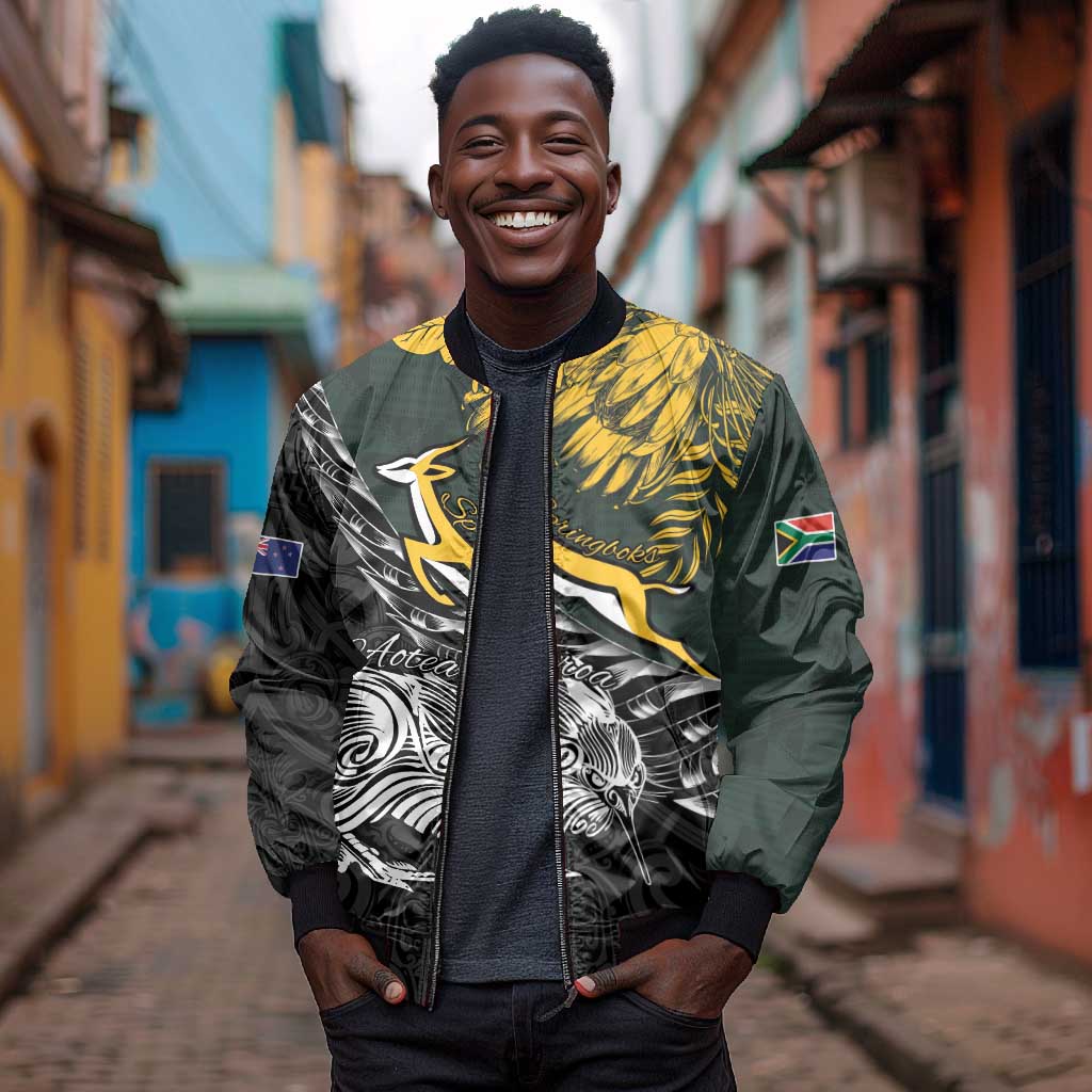 New Zealand vs South Africa Rugby Personalised Bomber Jacket Maori Kiwi With Springboks