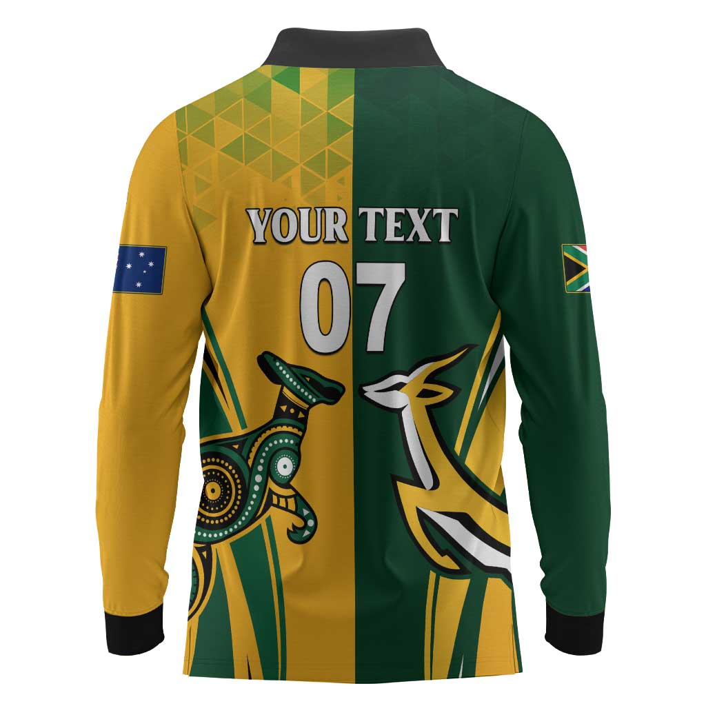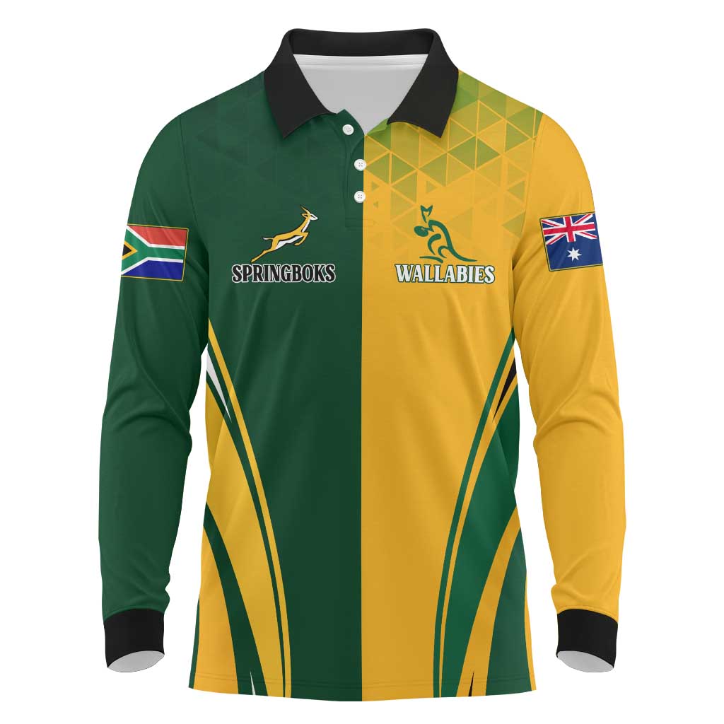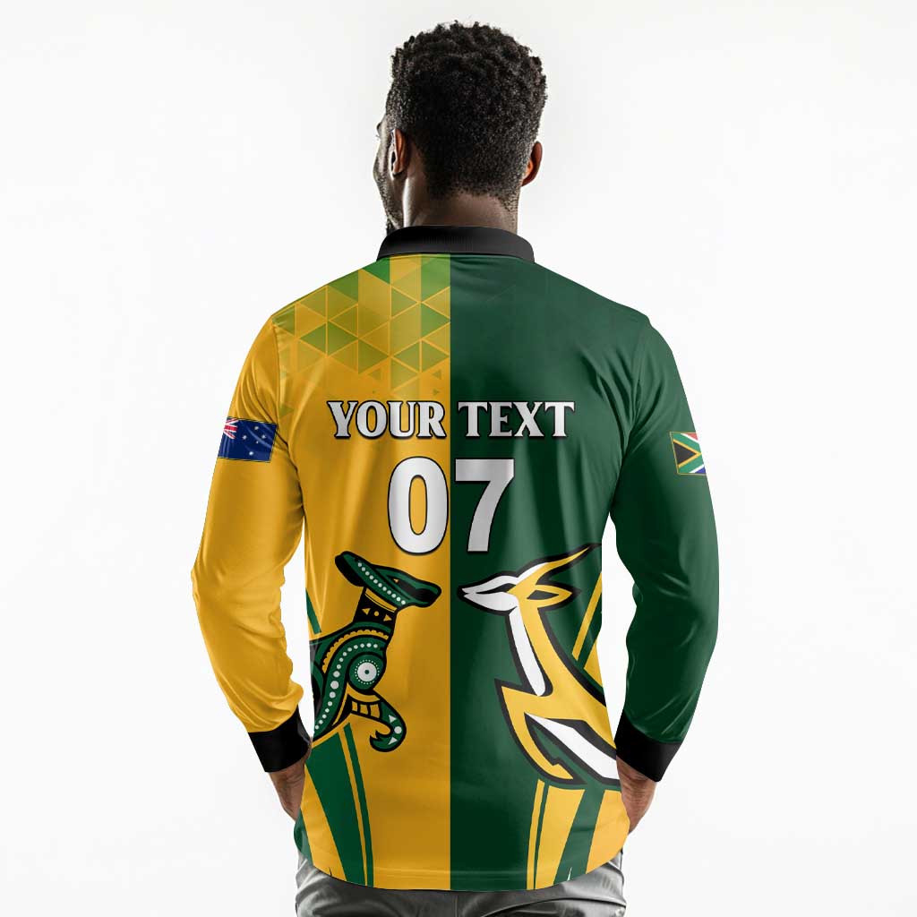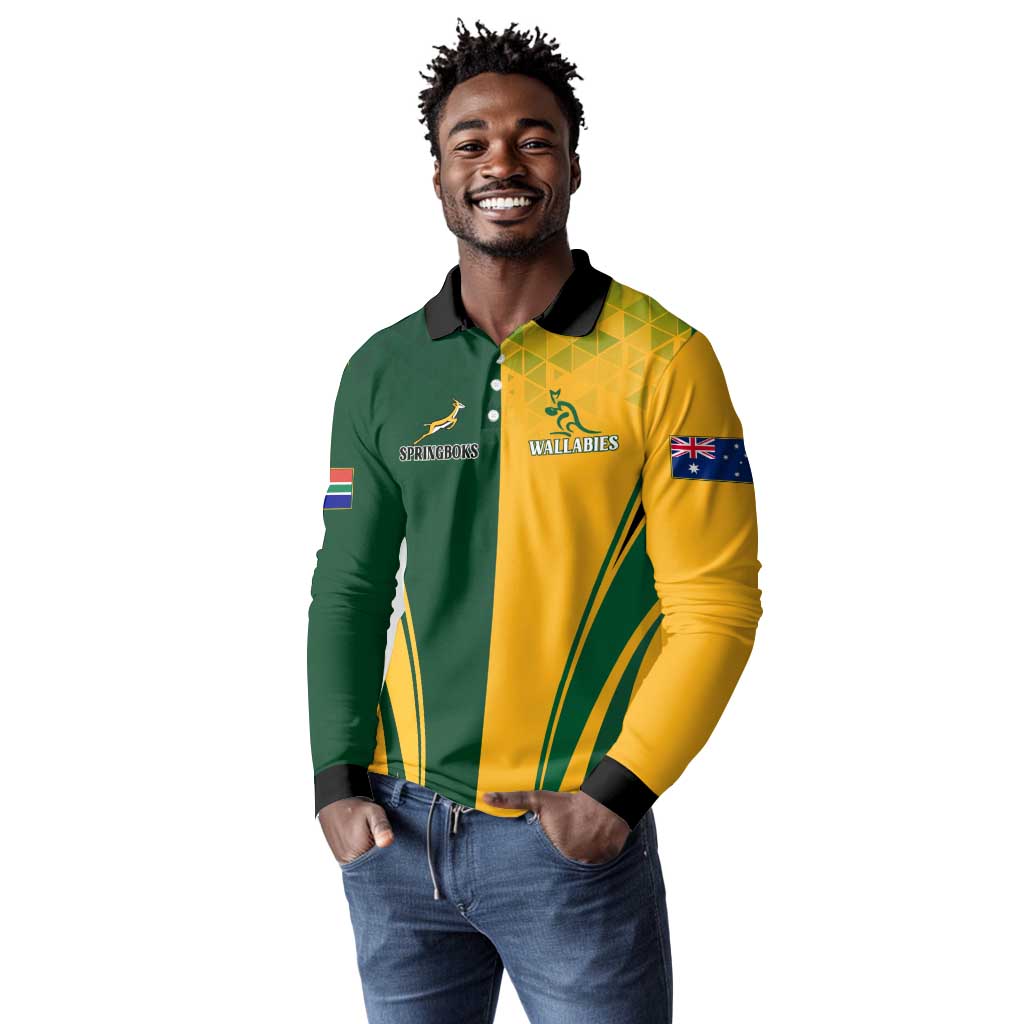Personalised Australia Mix South Africa Rugby Long Sleeve Polo Shirt Wallabies And Springboks - Champions Special Ver