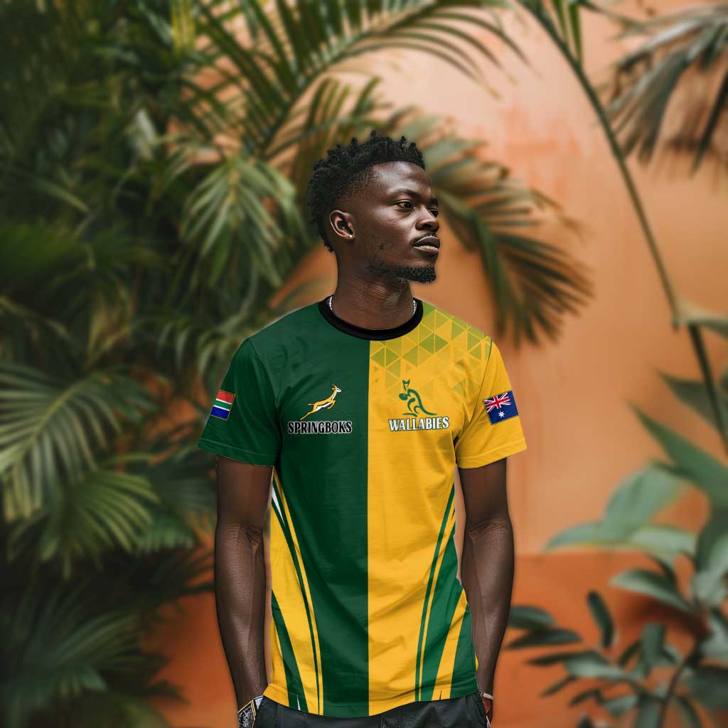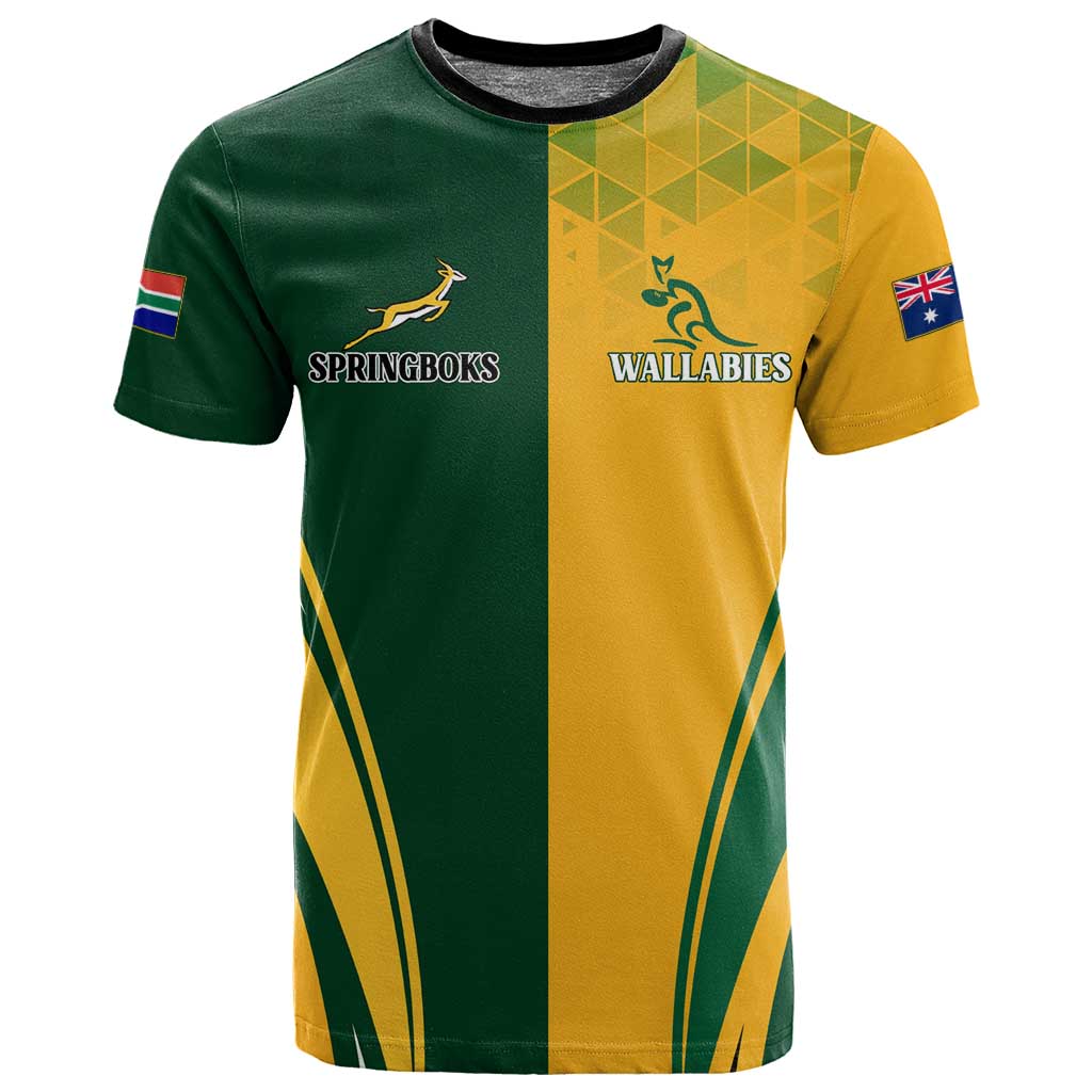 Personalised Australia Mix South Africa Rugby T shirt Wallabies And Springboks - Champions Special Ver