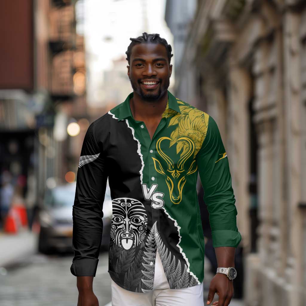 Personalised New Zealand Vs South Africa Rugby Long Sleeve Button Shirt Rivals Dynamics