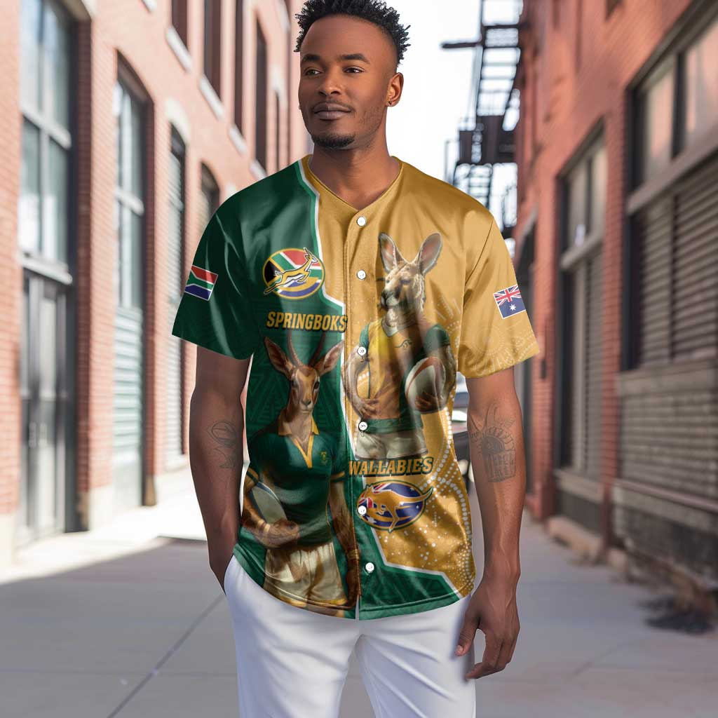Personalised South Africa And Australia Rugby Baseball Jersey 2024 Springboks Wallabies Mascots Together