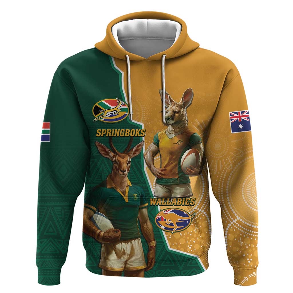 Personalised South Africa And Australia Rugby Hawaiian Shirt 2024 Springboks Wallabies Mascots Together