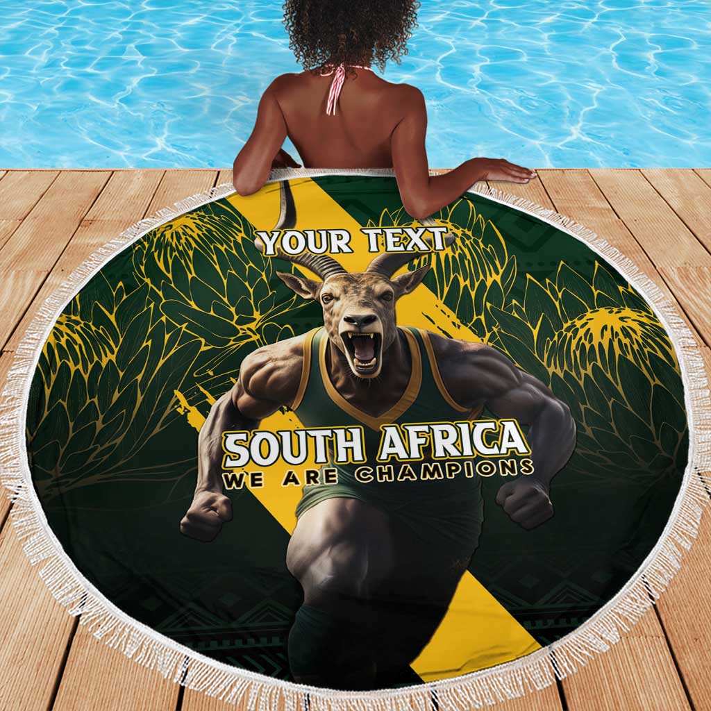 Personalised South Africa Rugby Beach Blanket Proud Bokke We Are Champions