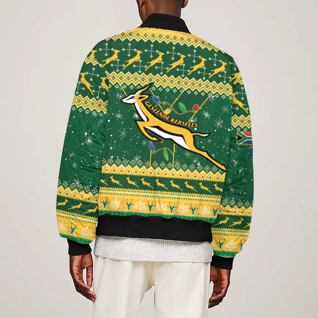 South Africa Christmas Rugby Bomber Jacket Springboks Geseende Kersfees