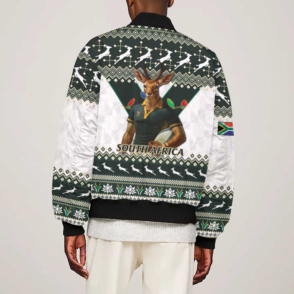 South Africa Christmas Rugby Bomber Jacket Springboks Mascot Mix African Pattern