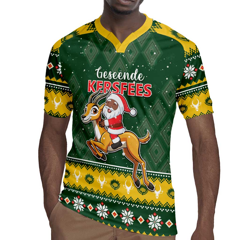 South Africa Christmas Rugby Jersey Funny Santa Riding Springbok