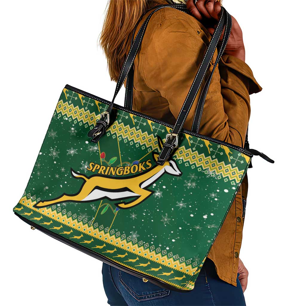 South Africa Christmas Rugby Leather Tote Bag Springboks Geseende Kersfees