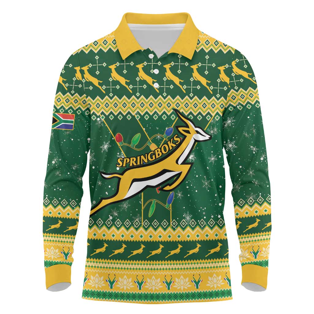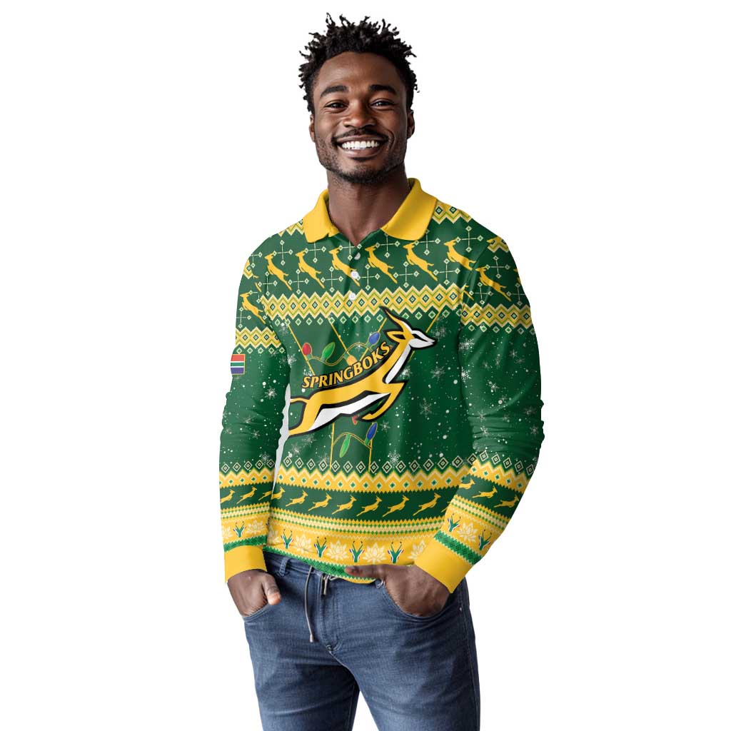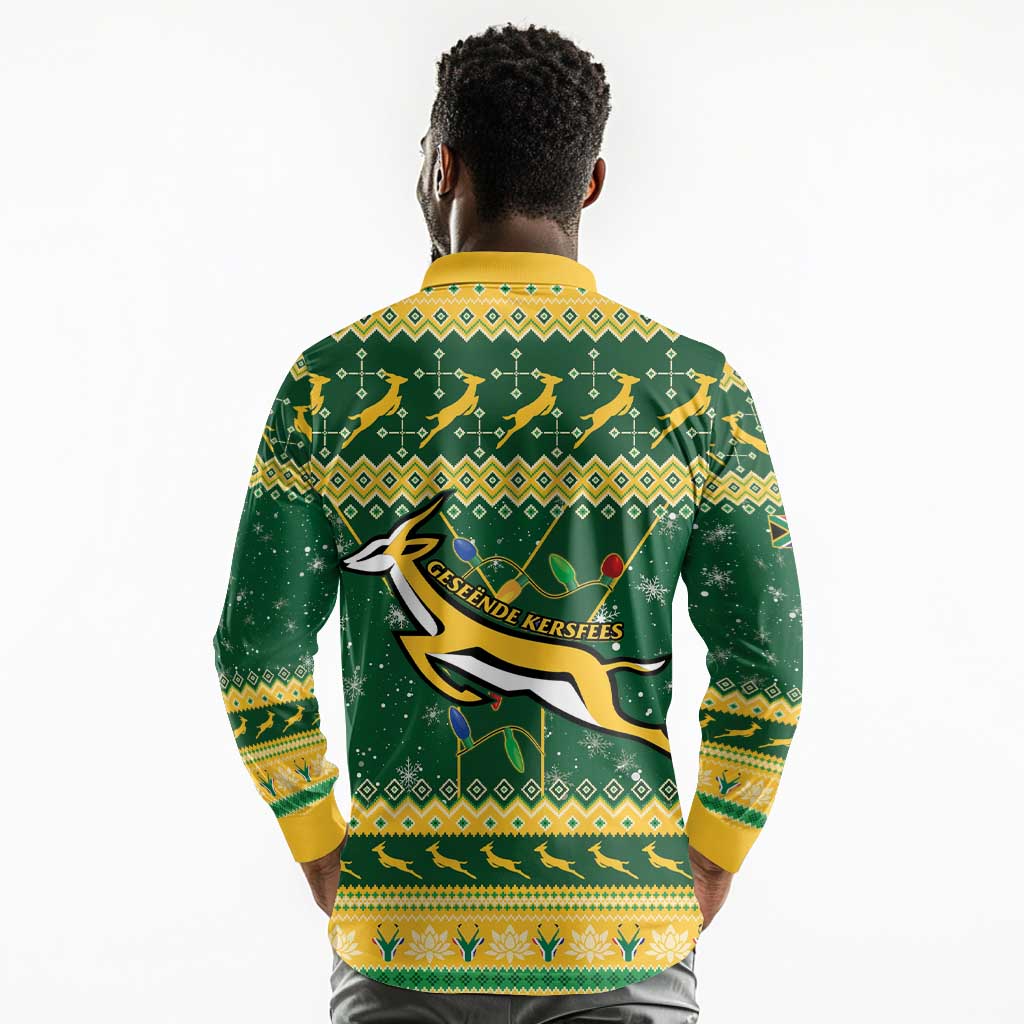 South Africa Christmas Rugby Long Sleeve Polo Shirt Springboks Geseende Kersfees