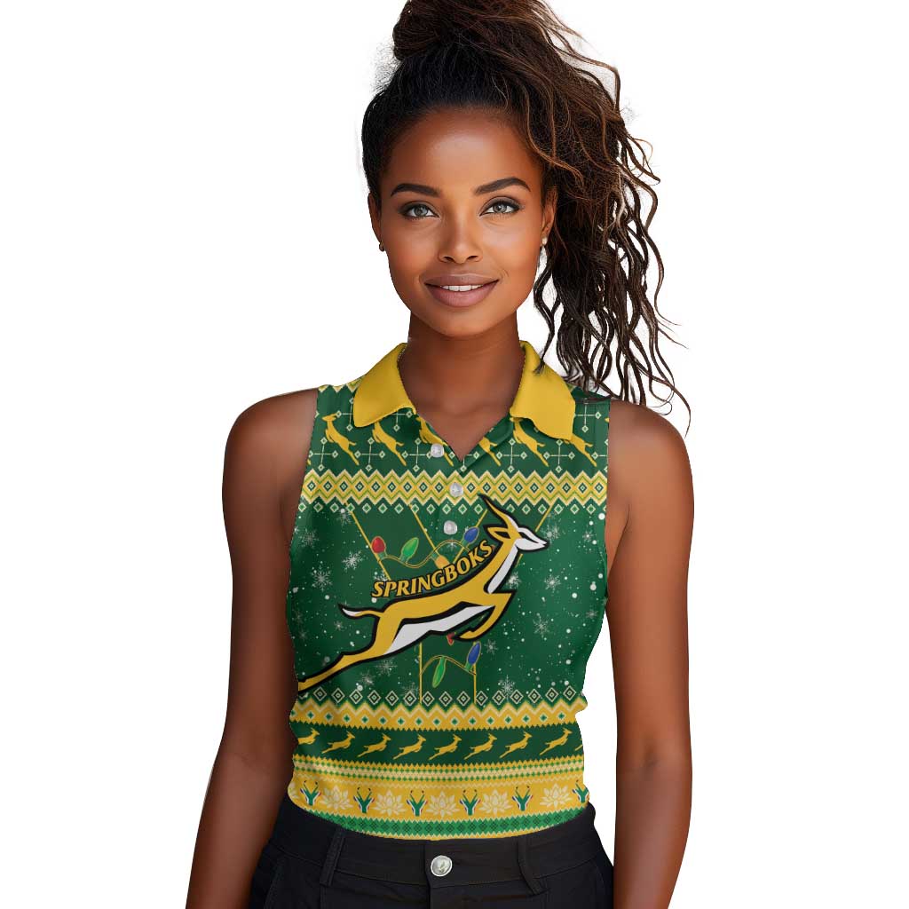 South Africa Christmas Rugby Women Sleeveless Polo Shirt Springboks Geseende Kersfees LT15