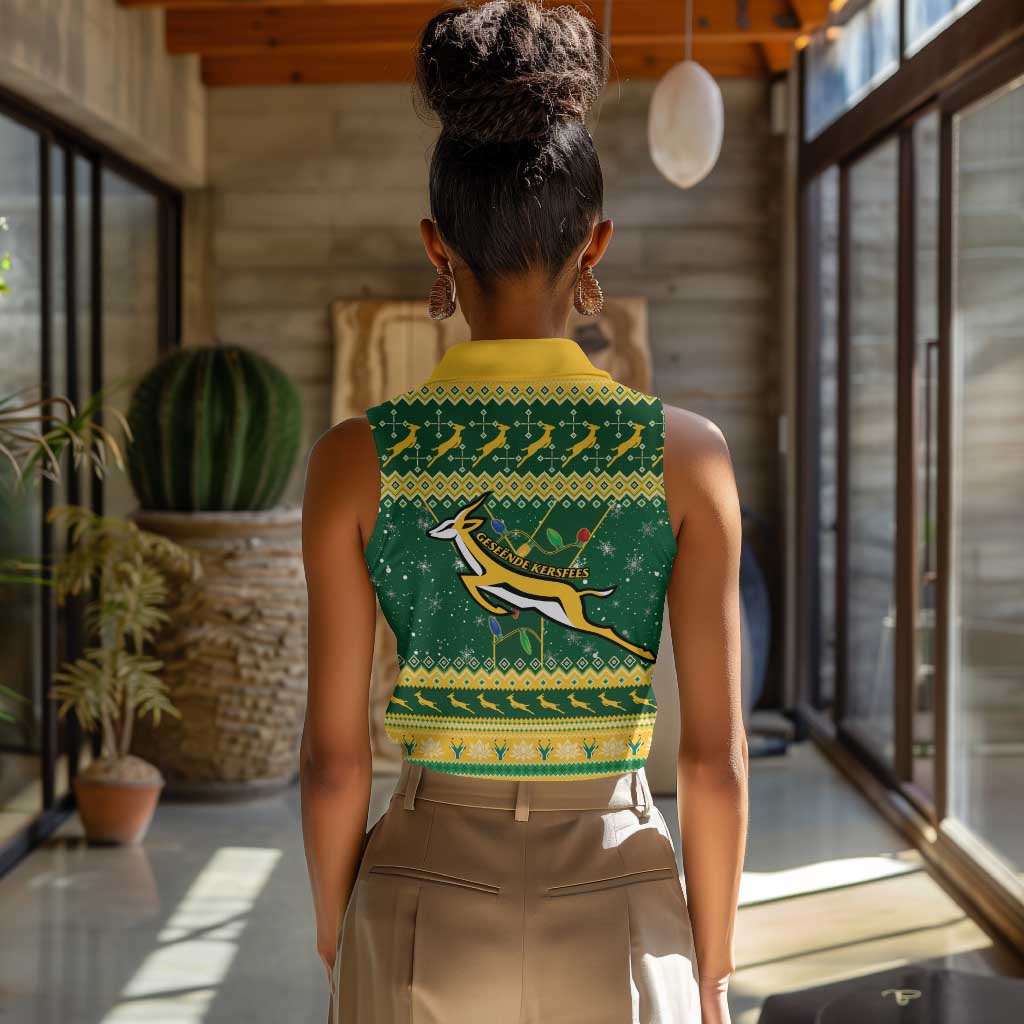 South Africa Christmas Rugby Women Sleeveless Polo Shirt Springboks Geseende Kersfees
