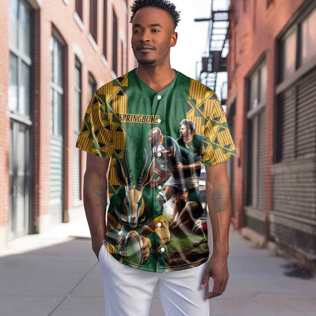 South Africa Rugby Baseball Jersey - Springbok Mascot, Players Fighting for Victory