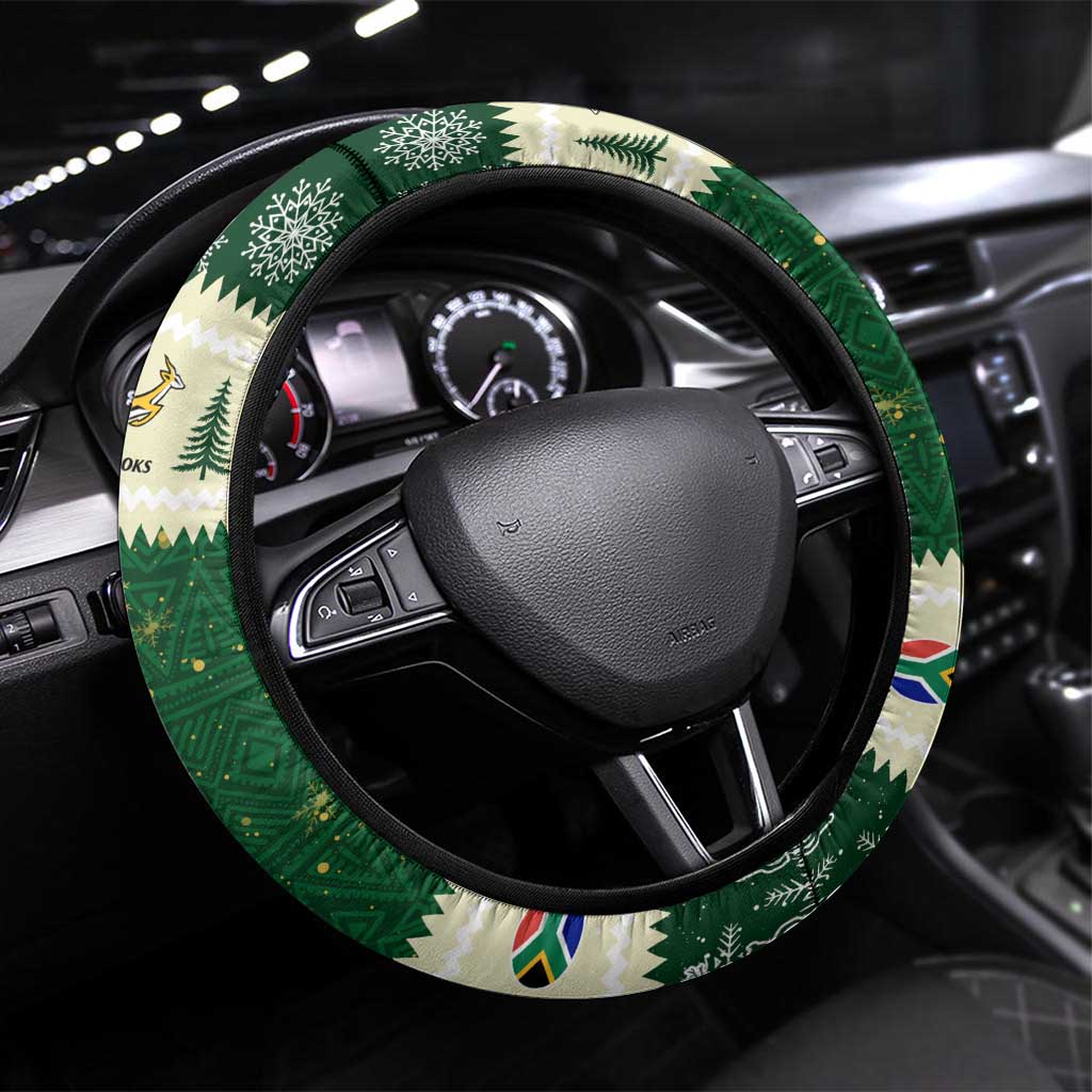 South Africa Rugby Christmas Steering Wheel Cover Geseende Kersfees Springboks African Pattern