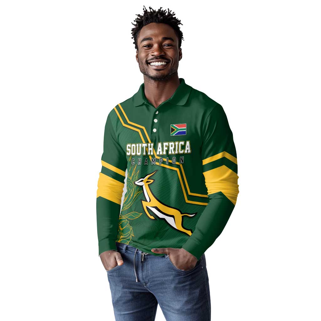 South Africa Rugby Long Sleeve Polo Shirt Champions GO Bokke