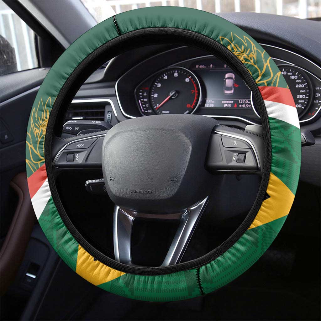 South Africa Rugby Steering Wheel Cover 2024 Go Springboks Mascot African Pattern