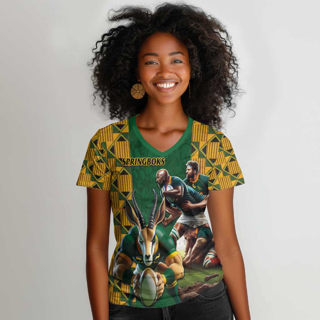 South Africa Rugby Women Sleeveless Polo Shirt - Springbok Mascot, Players Fighting for Victory LT03
