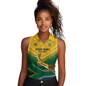 Vendor:African PrideCustom South Africa Rugby Women Sleeveless Polo Shirt 2024 Go Springboks Mascot African Pattern LT14