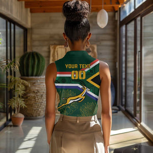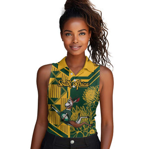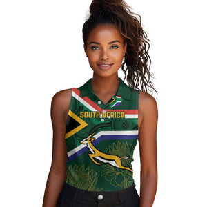 Vendor:African PrideCustom South Africa Rugby Women Sleeveless Polo Shirt Springboks With Protea Cynaroides LT18