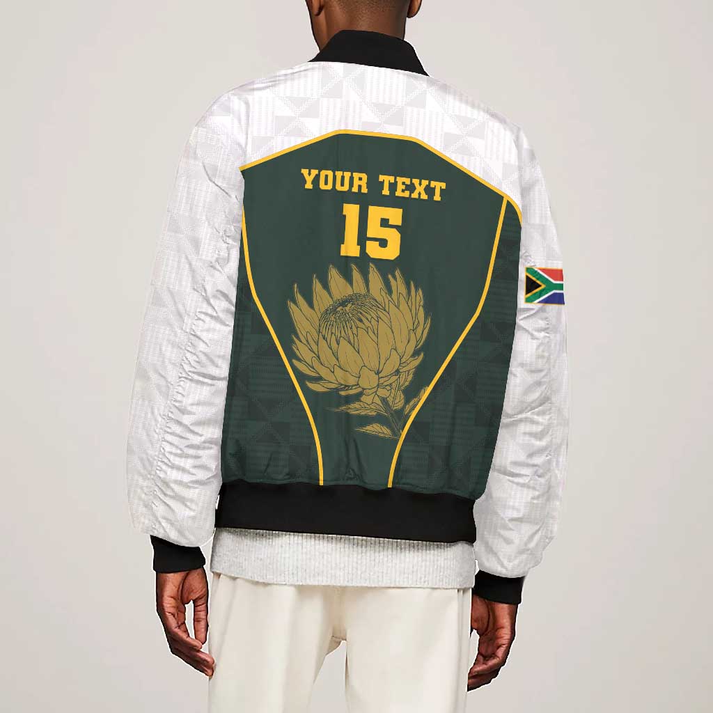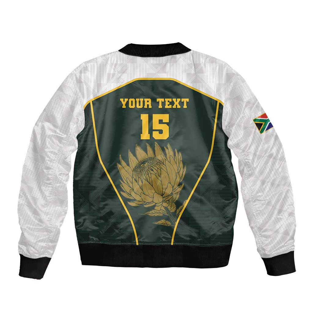 South Africa Rugby Personalised Bomber Jacket Springboks Mascot With King Protea - African Pattern
