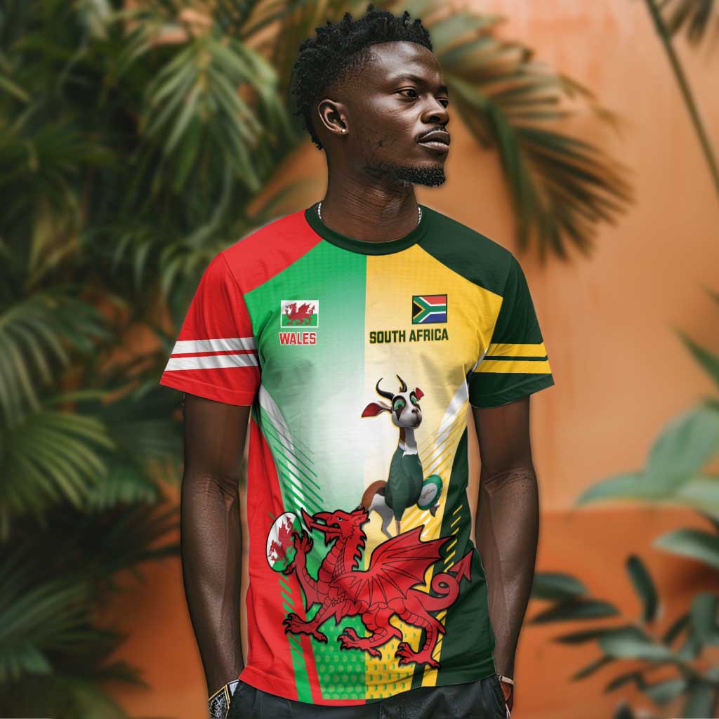 Custom South Africa And Wales Rugby T shirt Springboks Welsh Mascots Dynamic Version