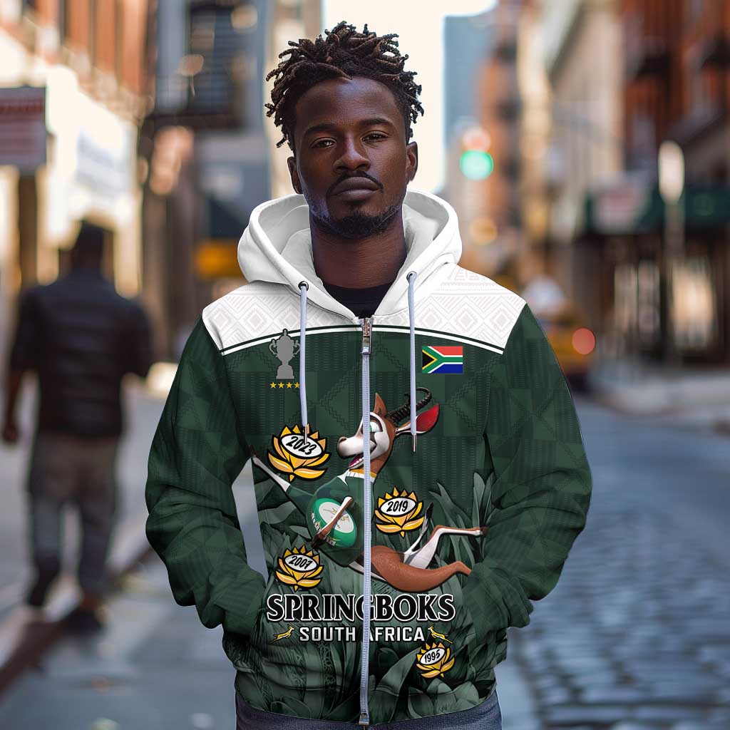 Custom South Africa Rugby Zip Hoodie Springboks 4th Champions World Cup Proud Bokke
