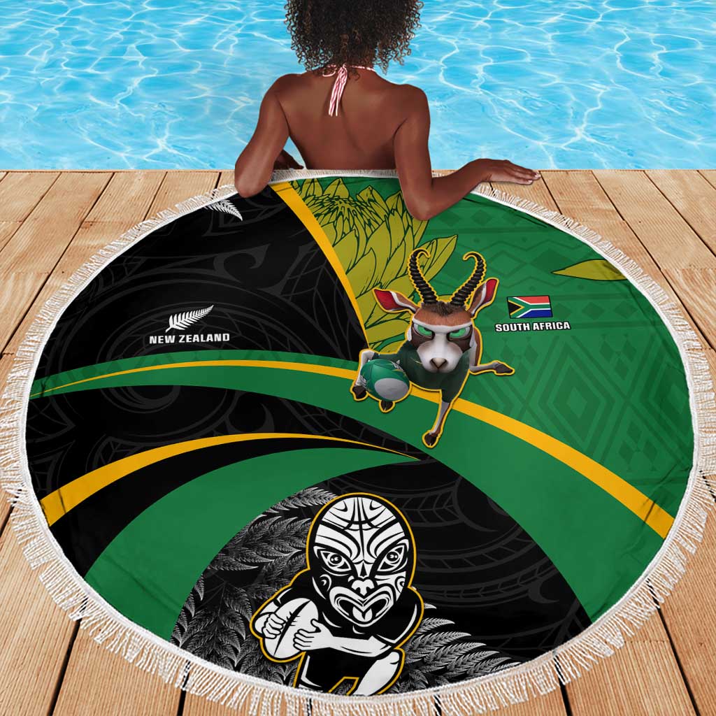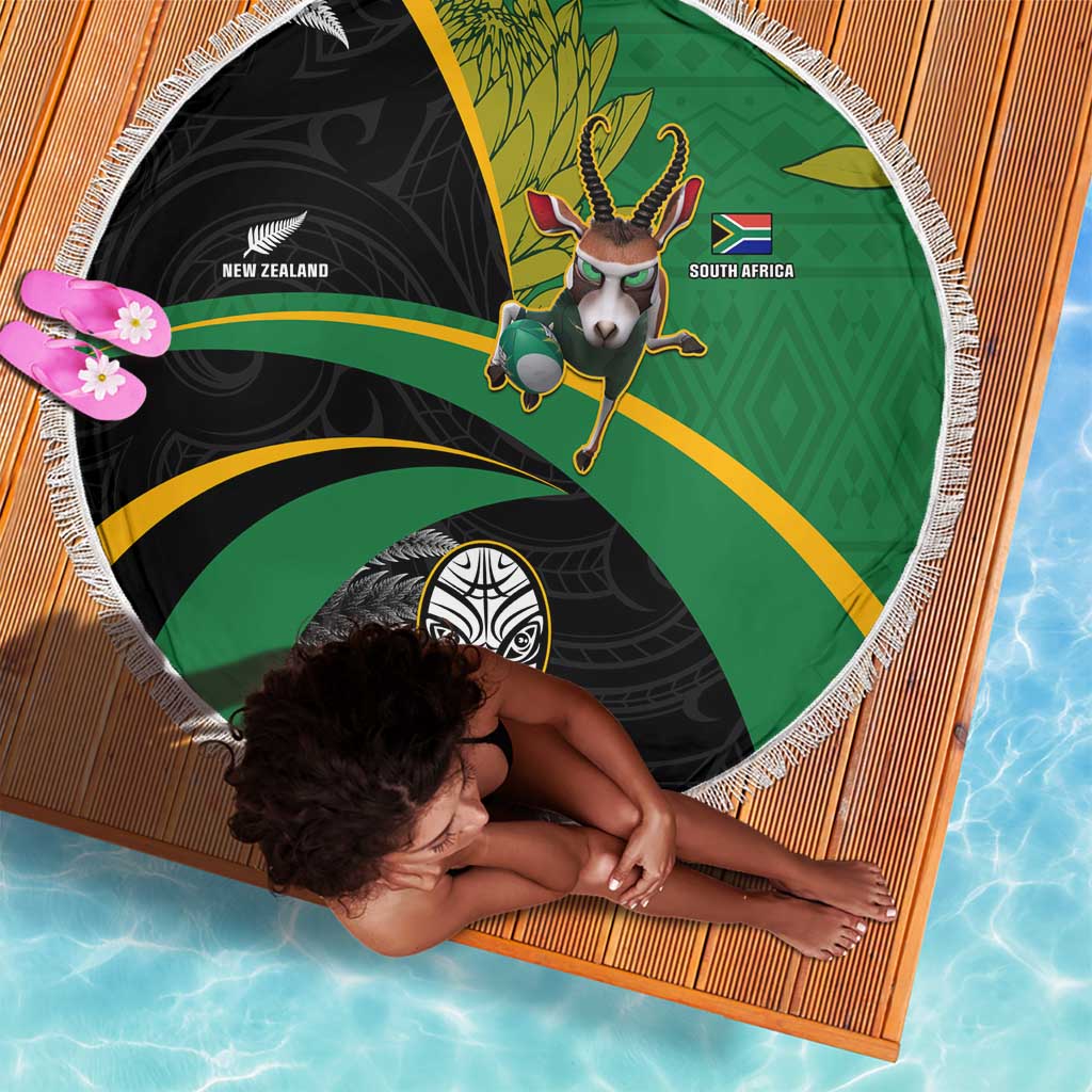 New Zealand And South Africa Rugby Beach Blanket 2023 Springboks Combine All Black Silver Fern