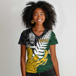 Personalised New Zealand Vs South Africa Rugby Women V-Neck T-Shirt Rivals - Tribal Style