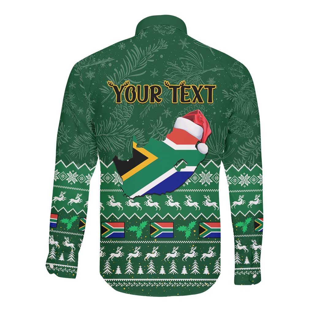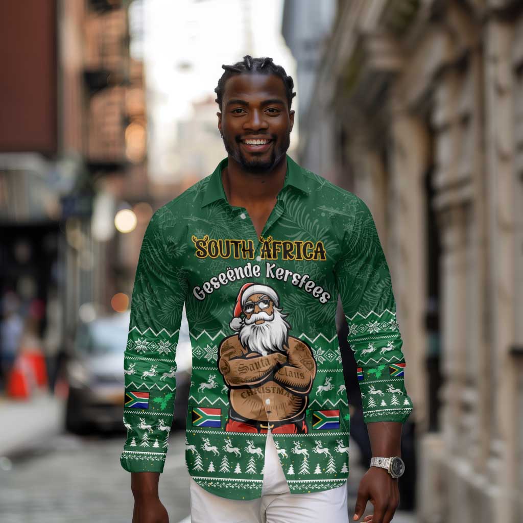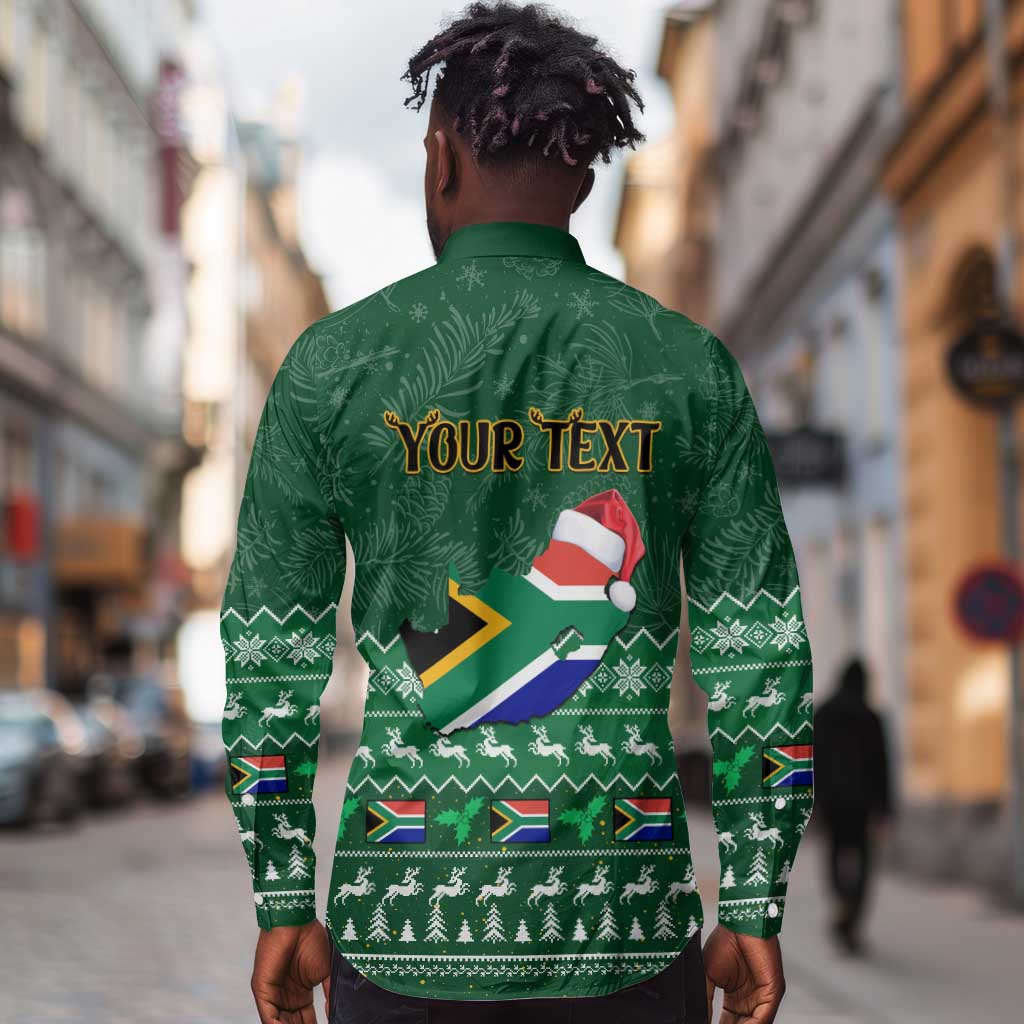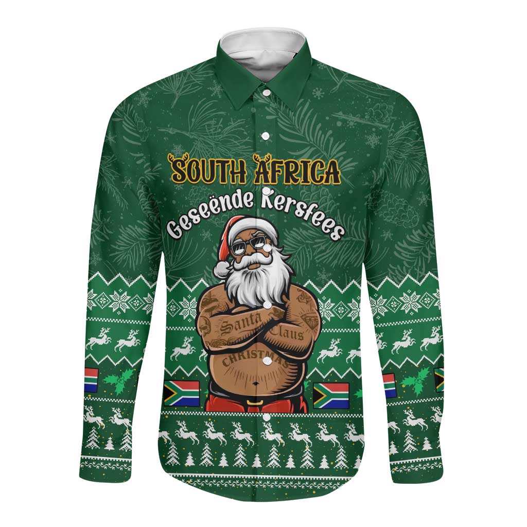 Personalised South Africa Christmas Long Sleeve Button Shirt Cool Santa Claus With South African Map