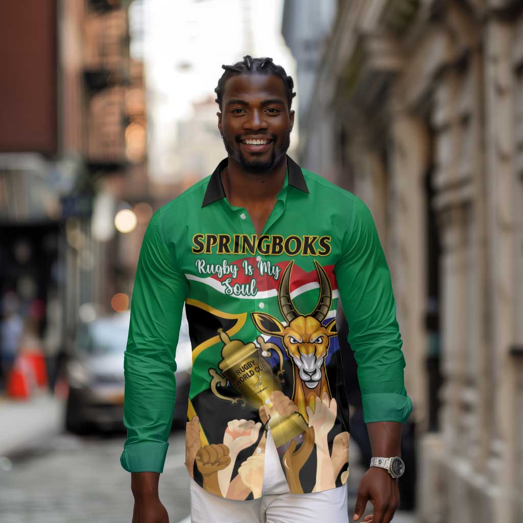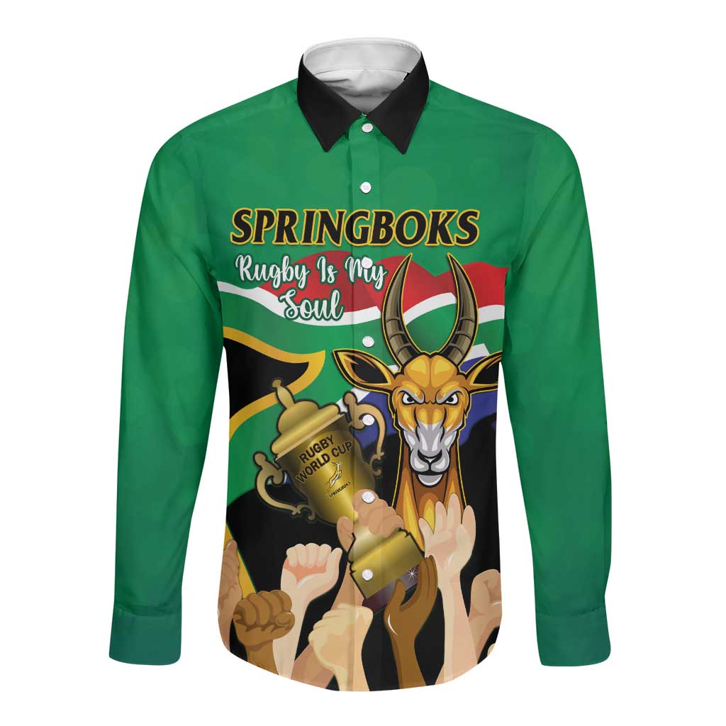 Personalised South Africa Special Holiday Long Sleeve Button Shirt Springboks Champions Celebration Rugby Is My Soul LT14