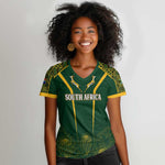 Personalised South African Heritage Day Women V-Neck T-Shirt Kente Ethnic Patterns Mix Springboks