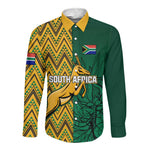 Personalized South Africa Long Sleeve Button Shirt with Springbok and Proteas African Pattern