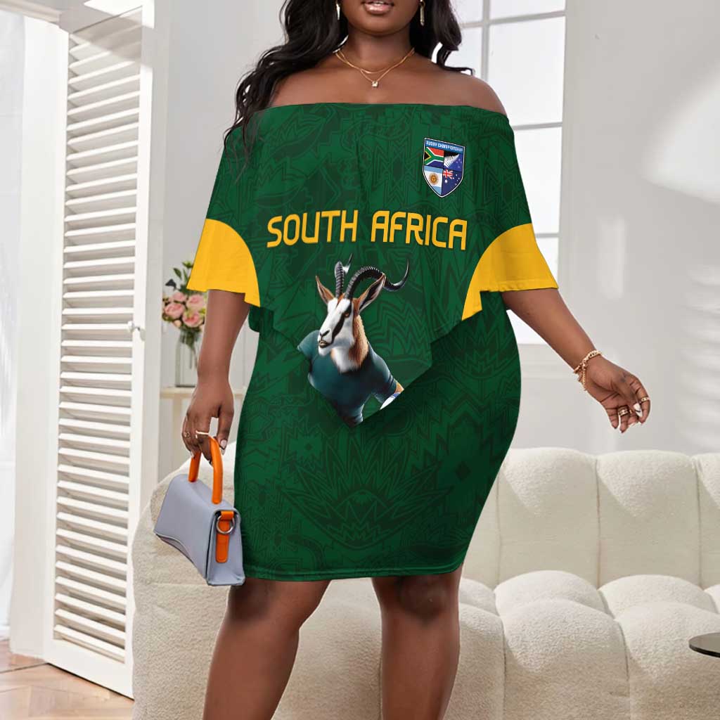 South Africa Rugby Custom Off The Shoulder Long Sleeve Dress Glory Be To Springboks