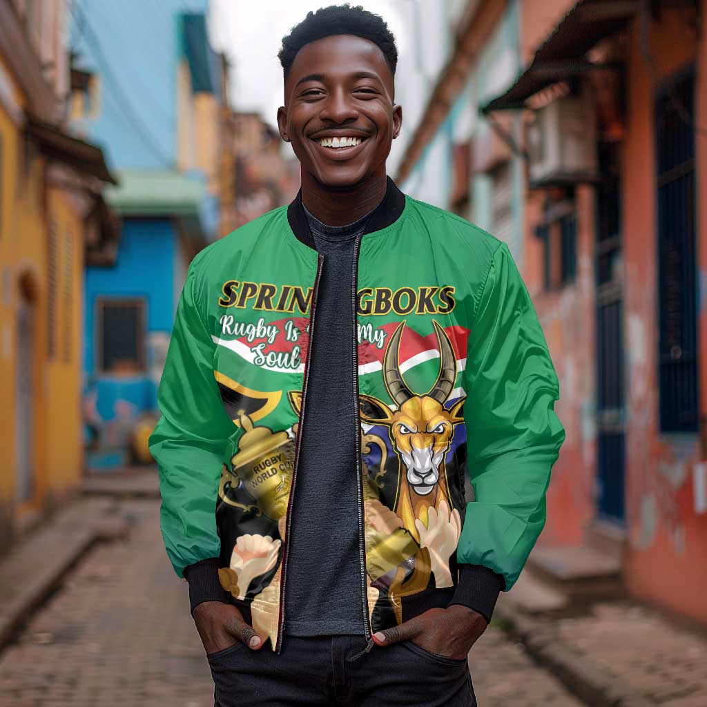 South Africa Special Holiday Sleeve Zip Bomber Jacket Springboks Champions Celebration Rugby Is My Soul