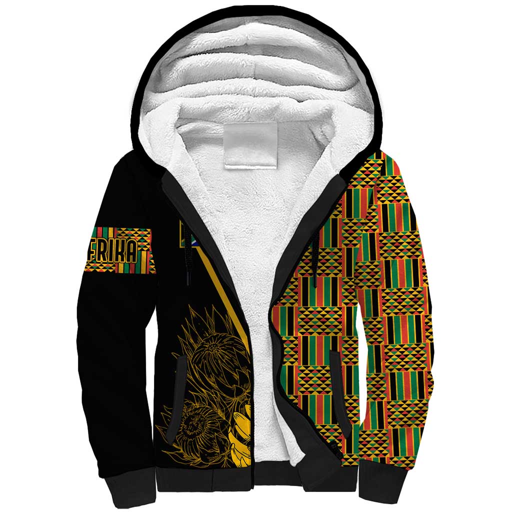 Personalised South African Heritage Day Sherpa Hoodie Kente Ethnic Patterns Mix Protea