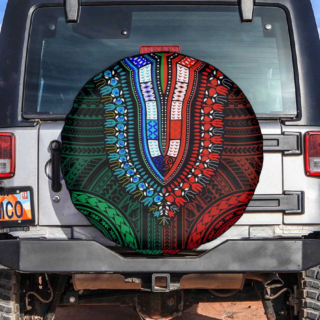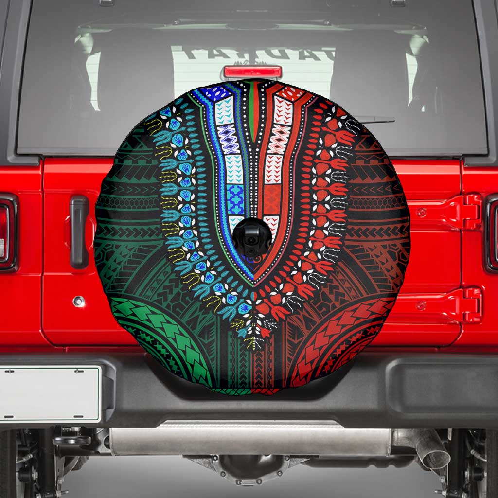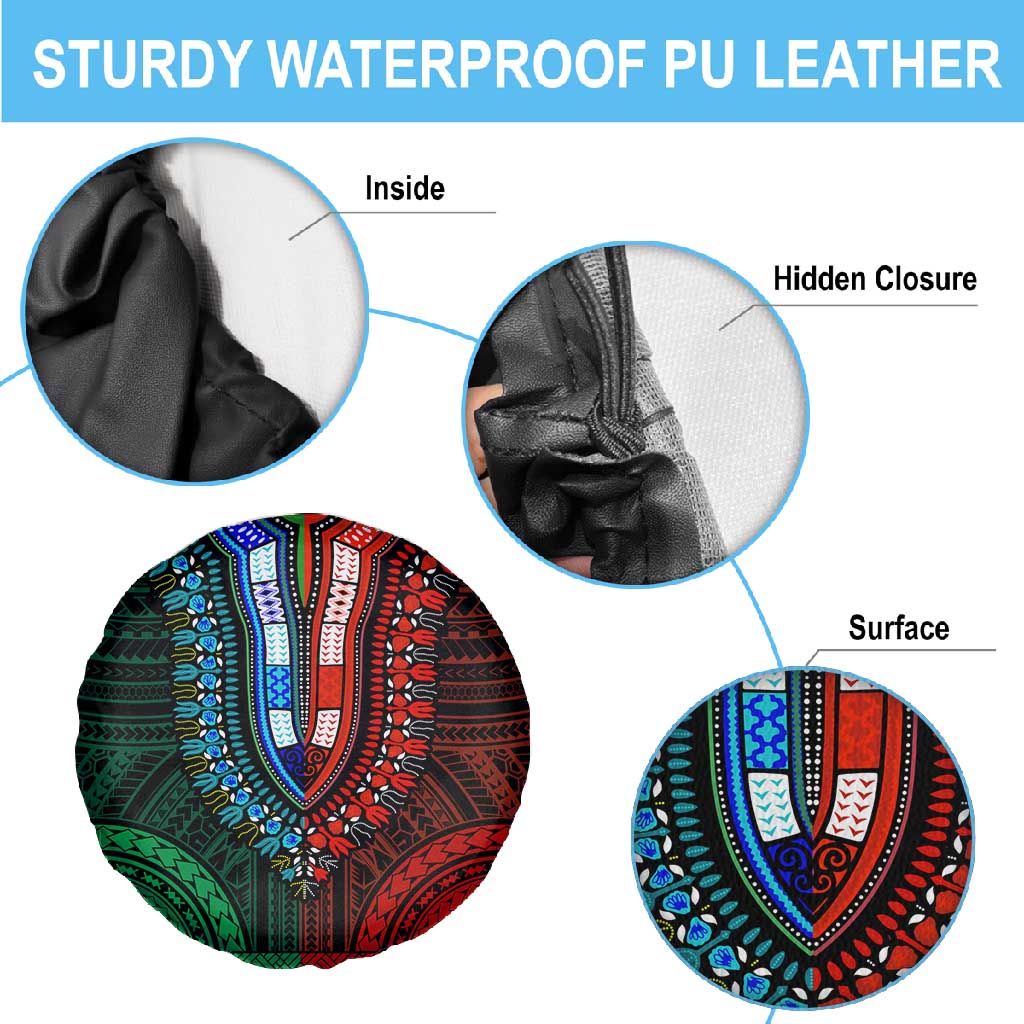 African Dashiki and Polynesian Pattern Spare Tire Cover Half Green-Red