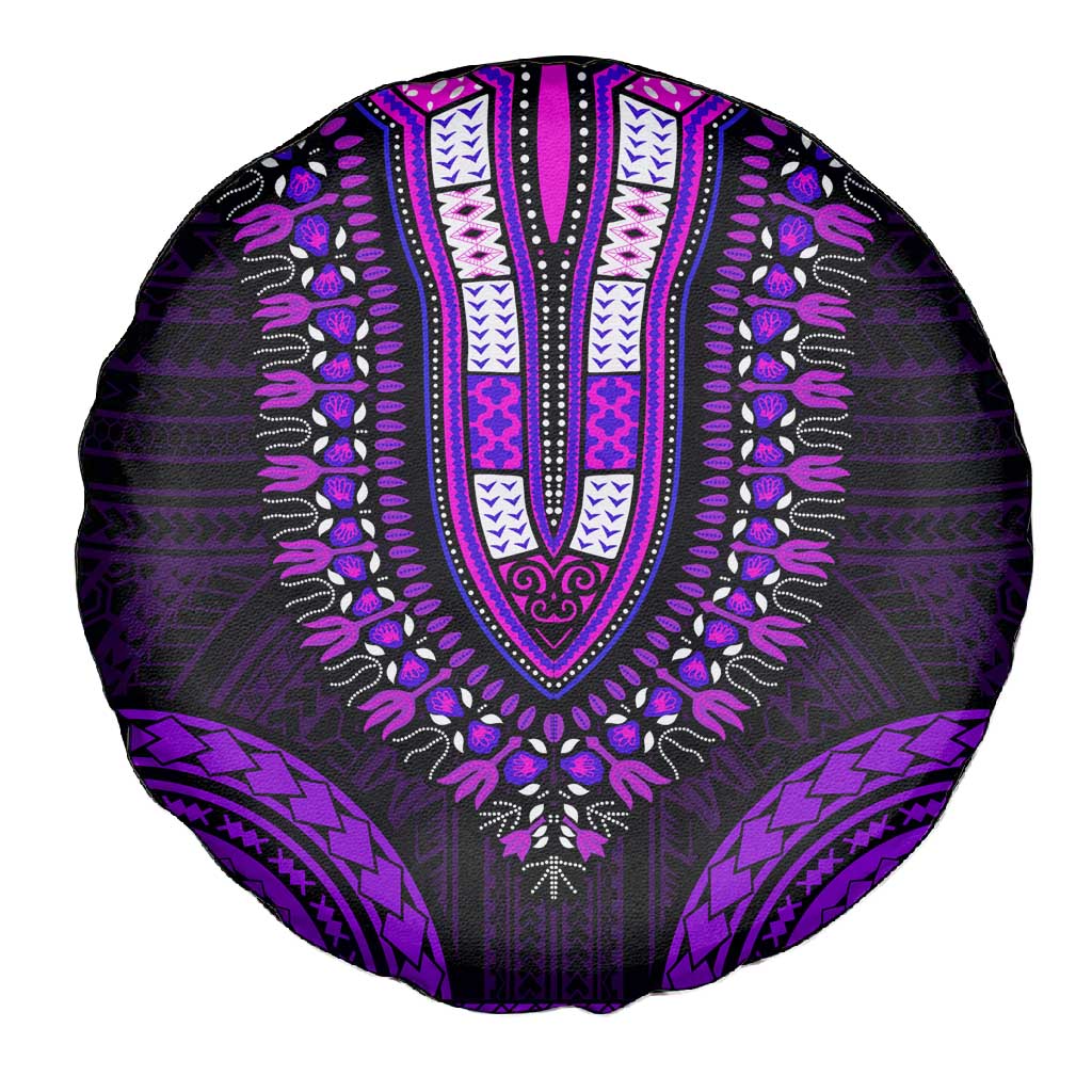 African Dashiki and Polynesian Pattern Spare Tire Cover Purple
