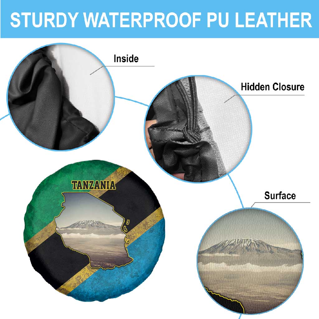 African Volcano Kilimanjaro Tanzania Spare Tire Cover Grunge Flag Map of Tanzania