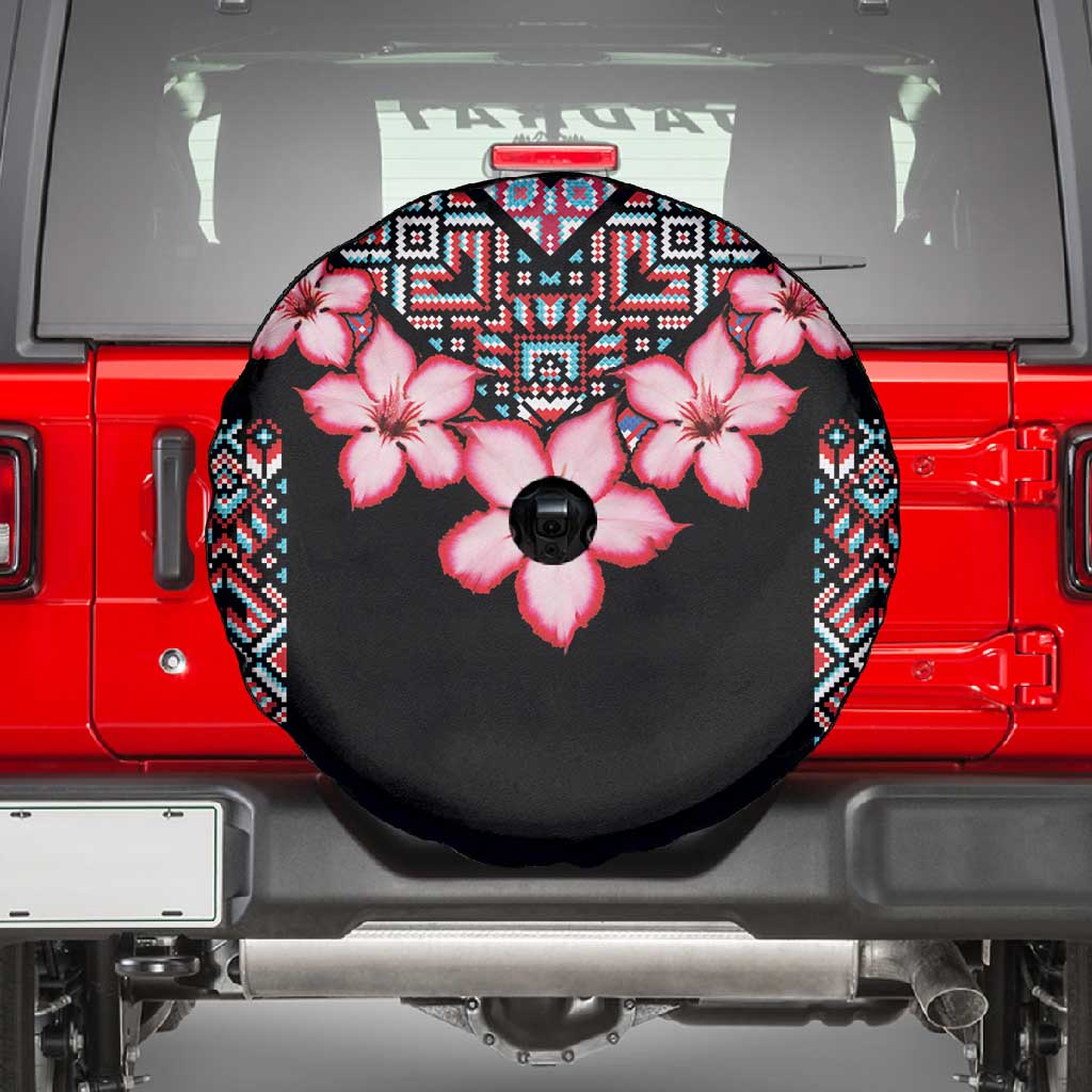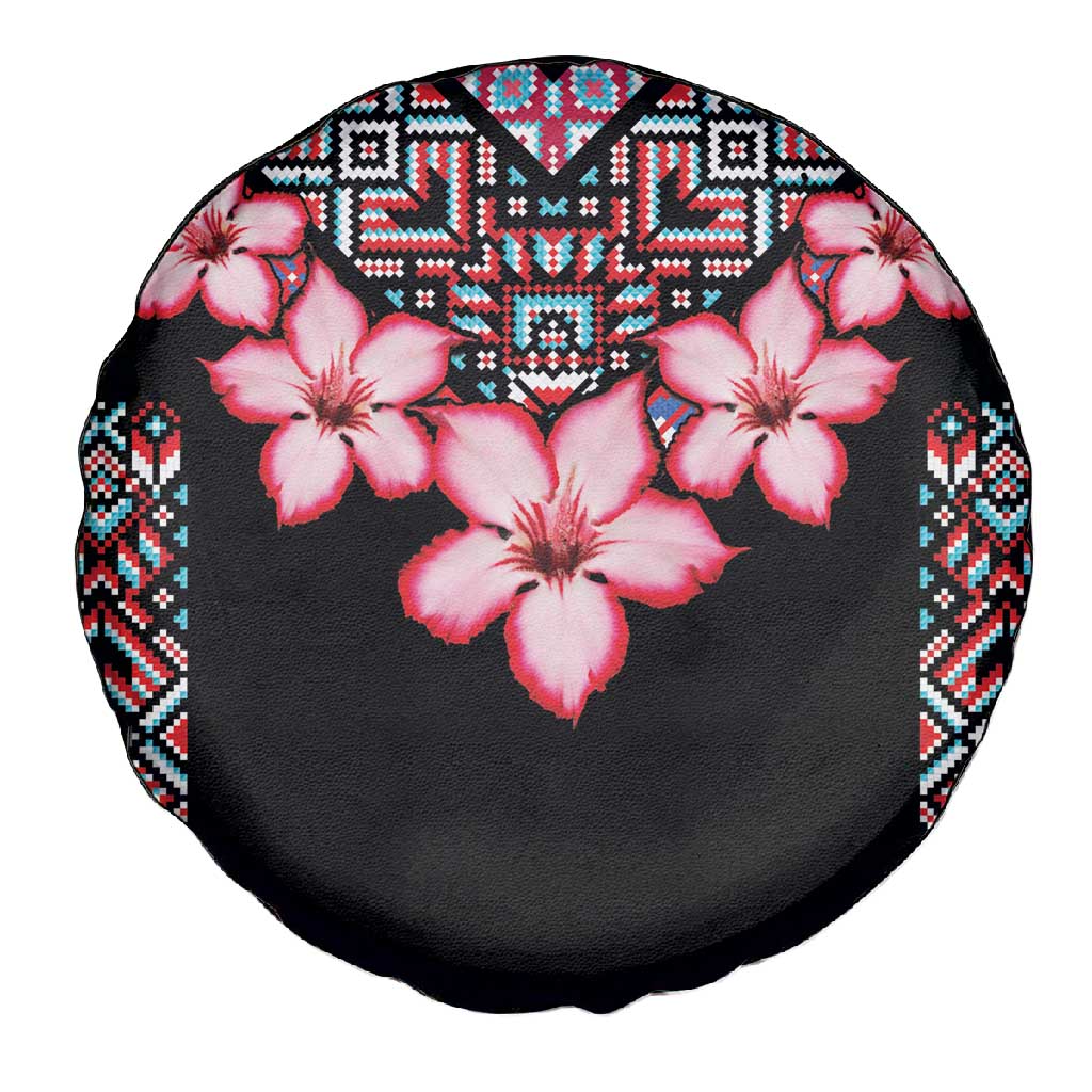 Afro Adenium Multiflorum Flowers Spare Tire Cover Mix Native Tribal Pattern
