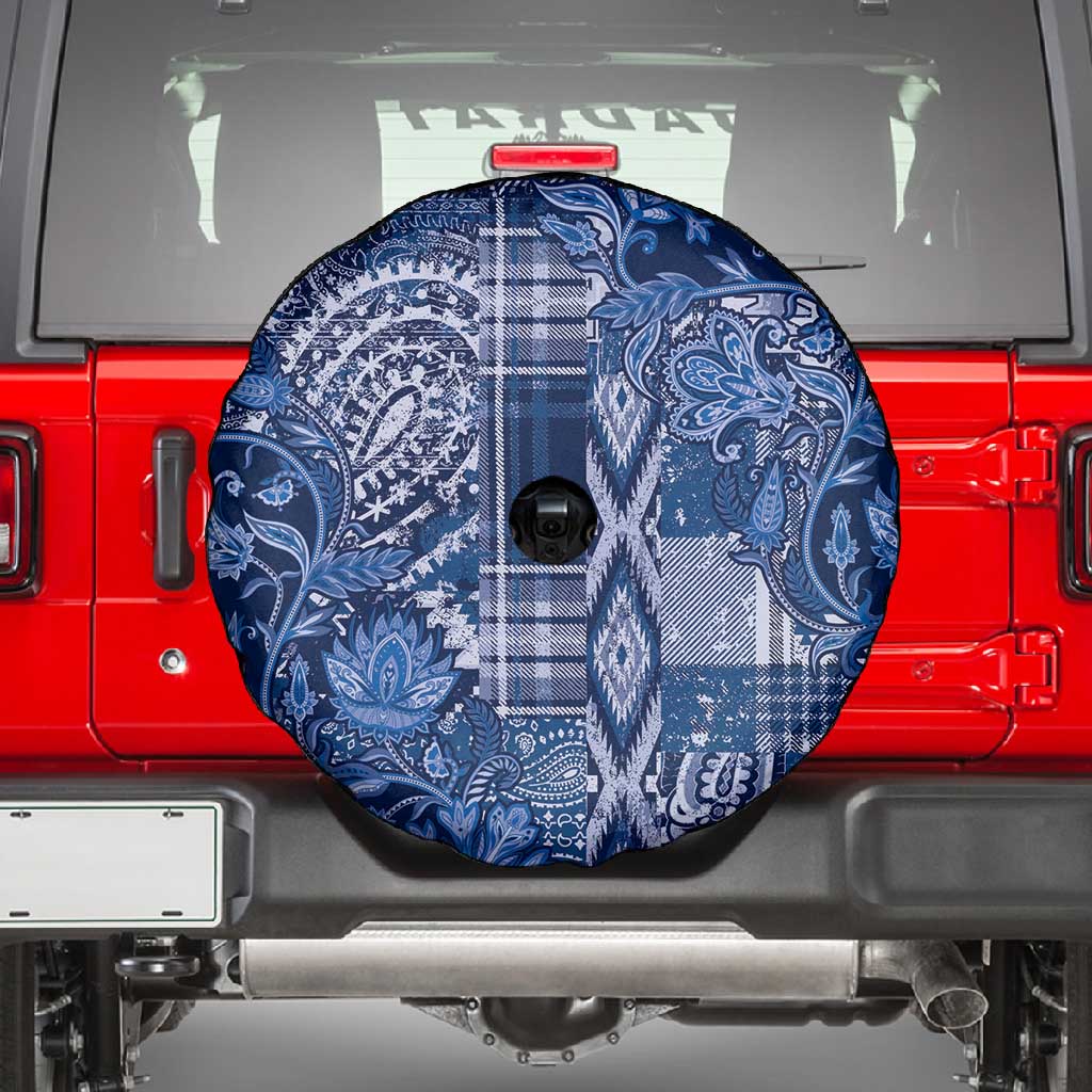 Afro Floral mix Maasai Shuka Spare Tire Cover Blue Moitf