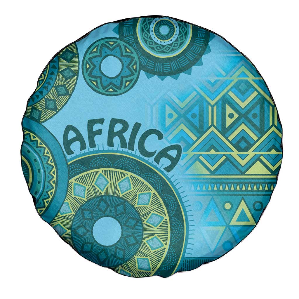 Afro Tribal Traditional Pattern Spare Tire Cover Blue Motif