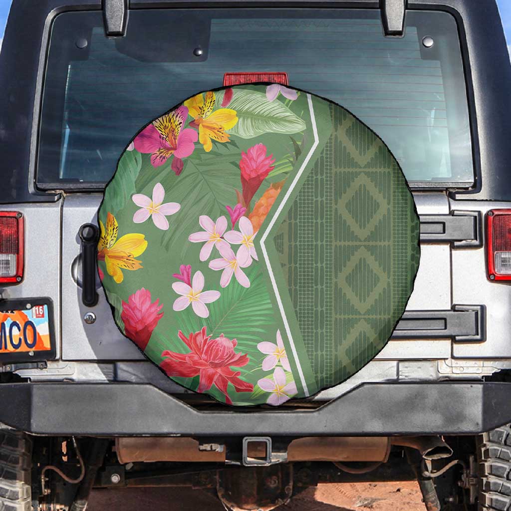 Afro Tropical Flowers Spare Tire Cover Green Version