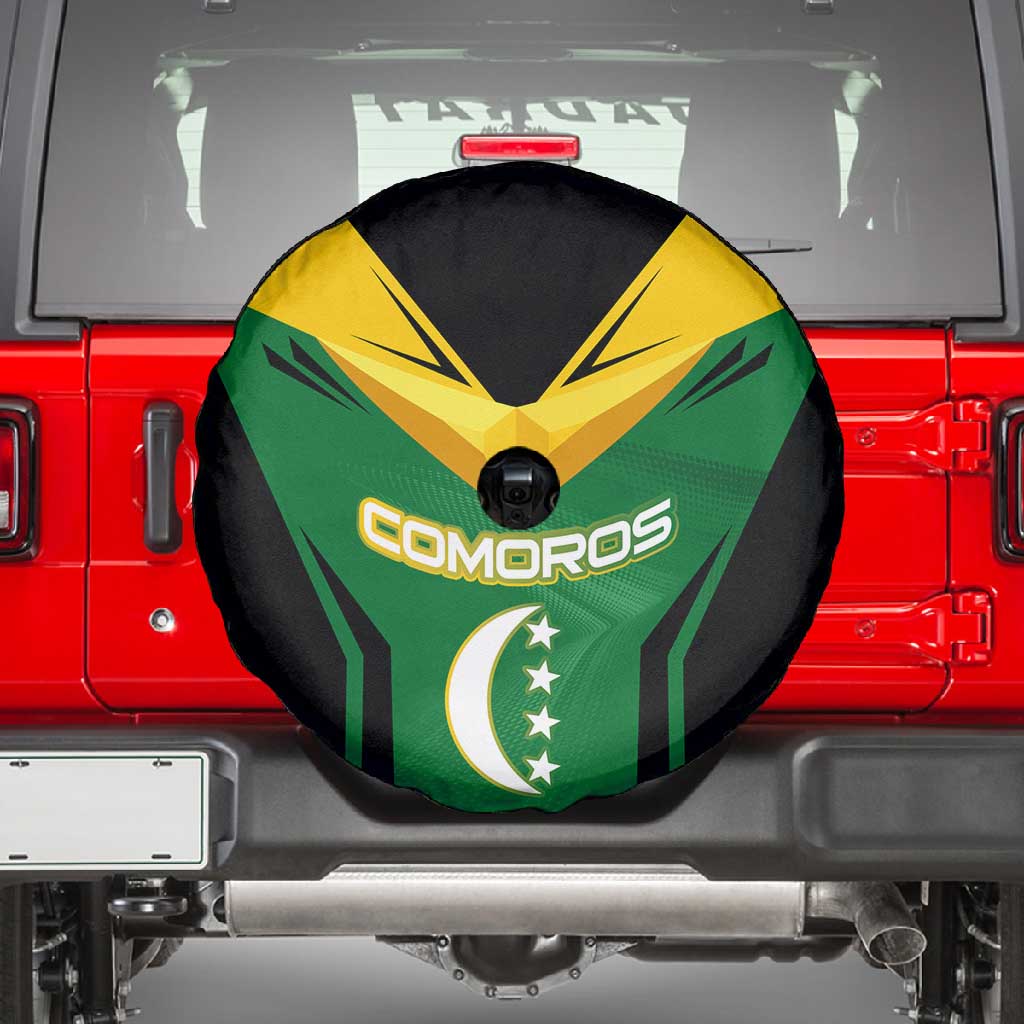 Comoros Spare Tire Cover - National Colors Green Yellow Black Crescent Moon and Stars Emblem