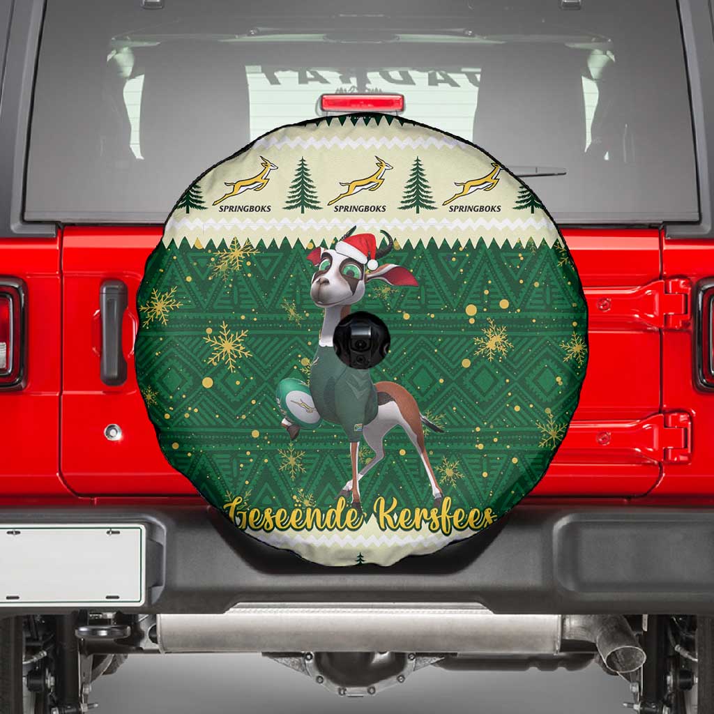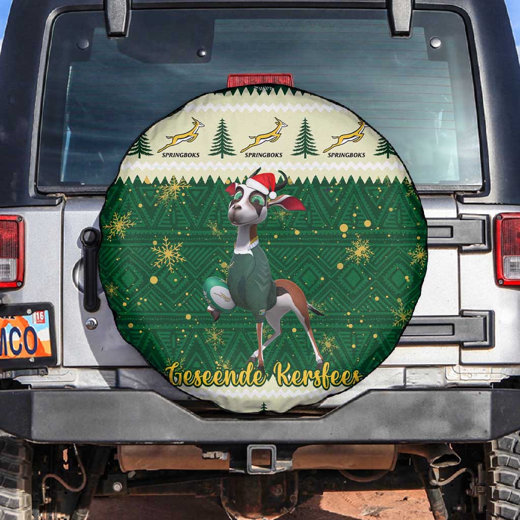 Custom South Africa Rugby Christmas Spare Tire Cover Geseende Kersfees Springboks African Pattern