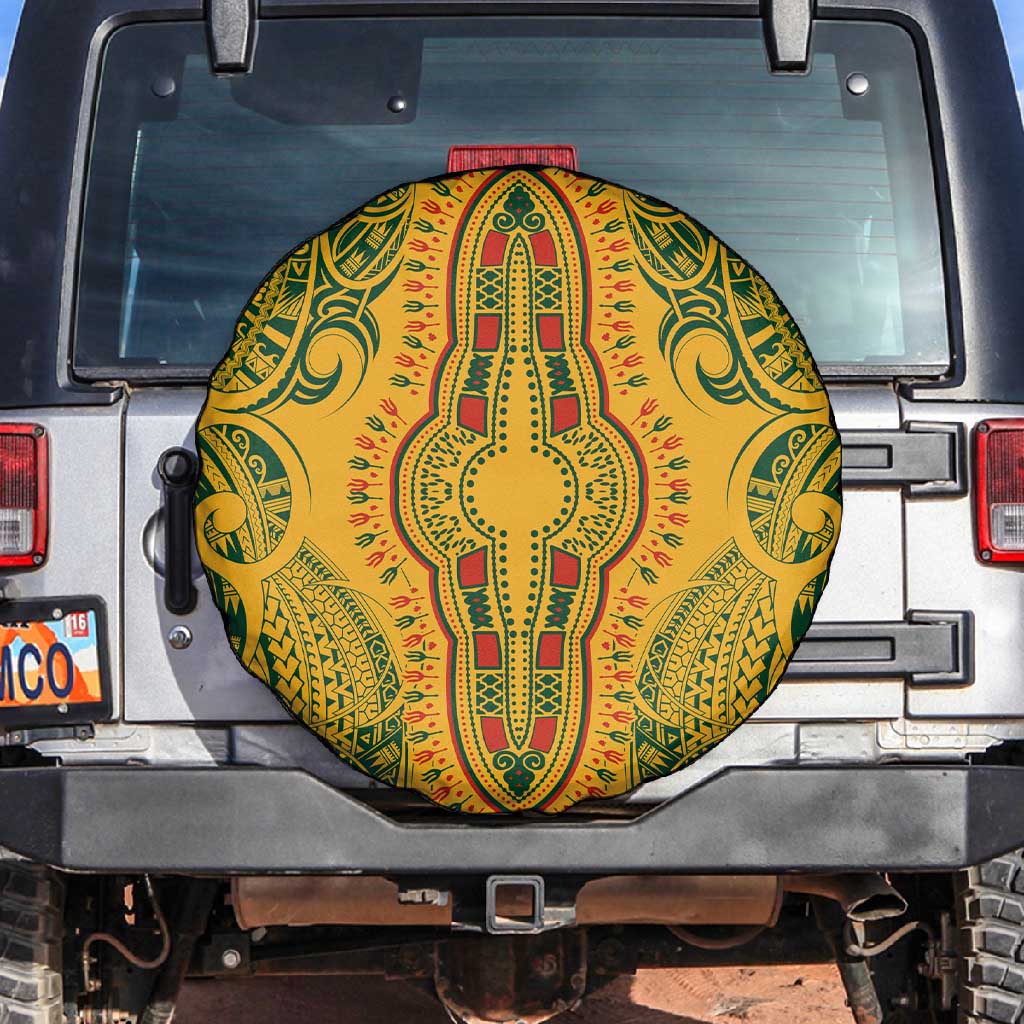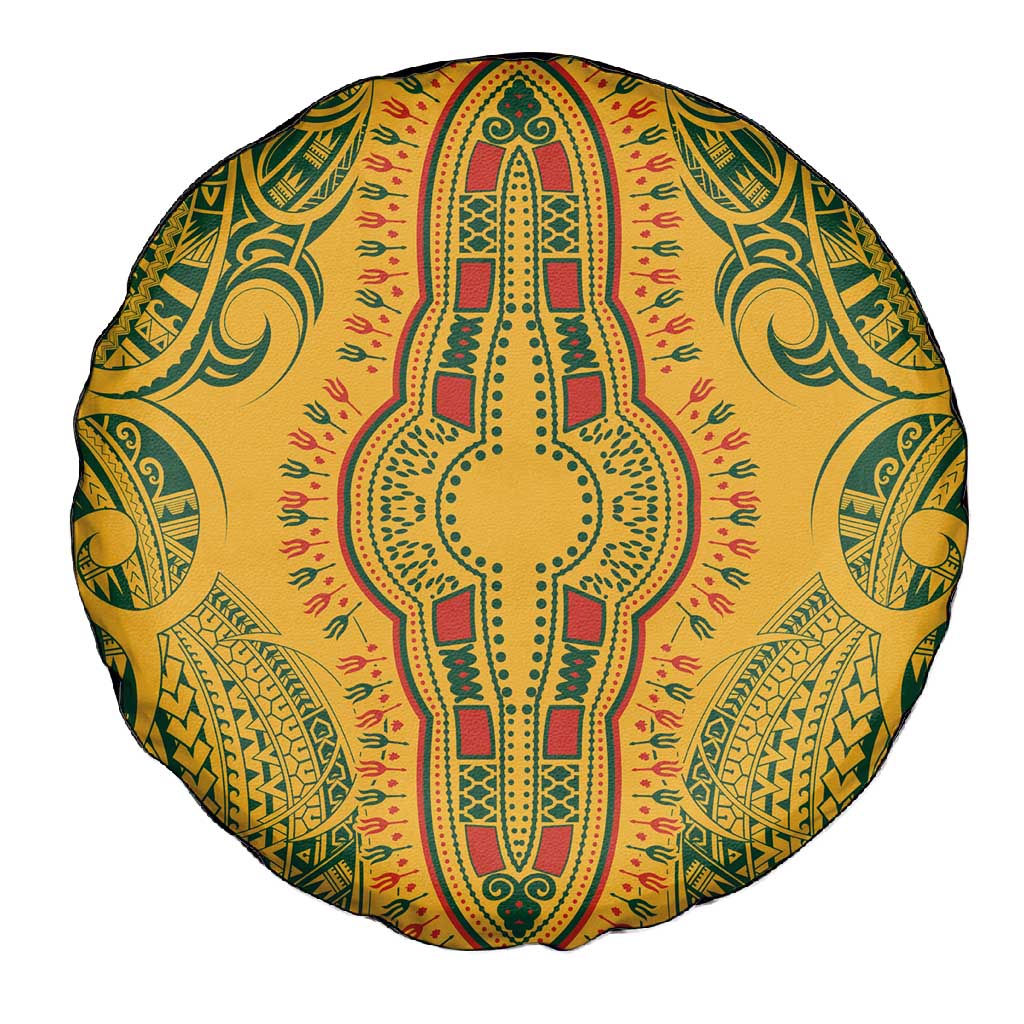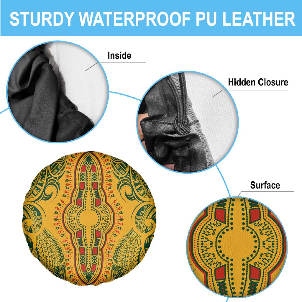 Dashiki and Polynesian Pattern Spare Tire Cover Afro Pacific Culture Gold Version