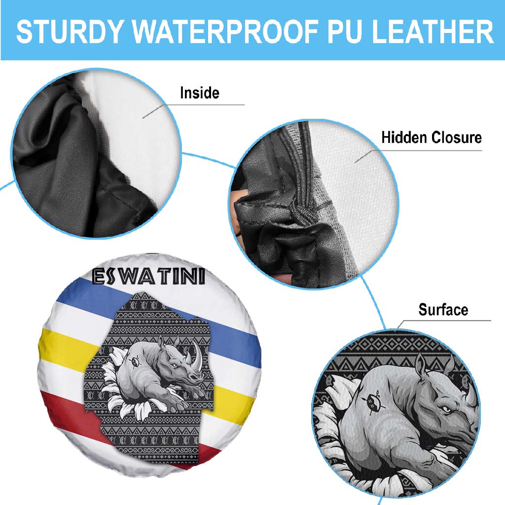 Eswatini Rhino Spare Tire Cover Swazi Map Flag and African Traditional Patterns