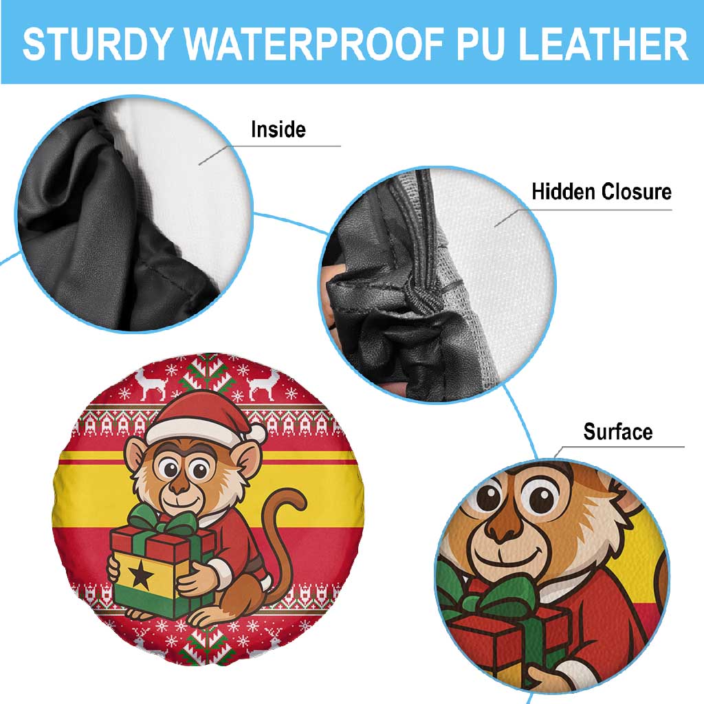 Ghana Christmas Spare Tire Cover Monkey Holding Gift Ghana Map and Festive