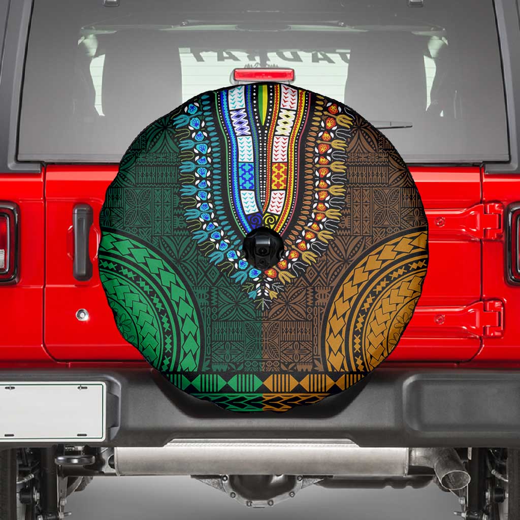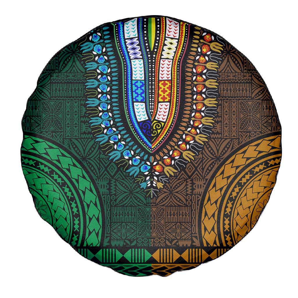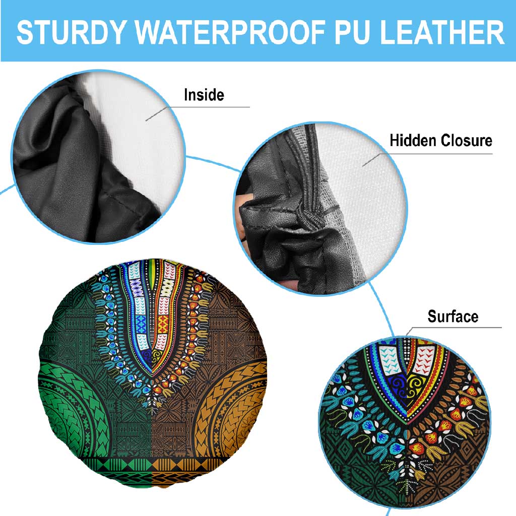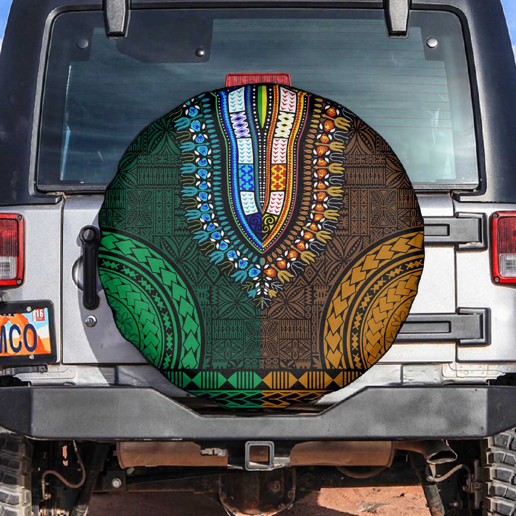Green-gold Dashiki and Tapa Pattern Spare Tire Cover Africa-Polynesia Together Culture