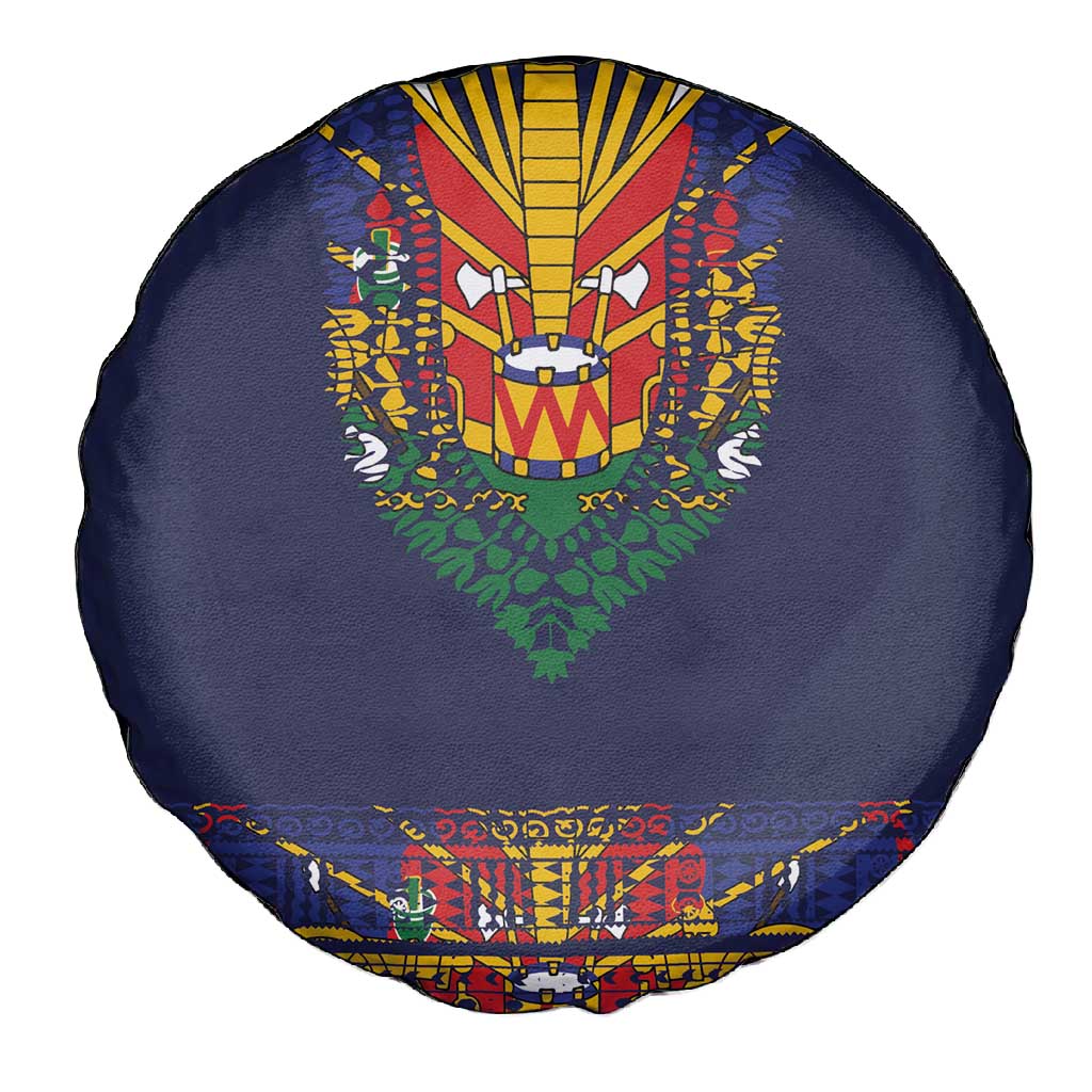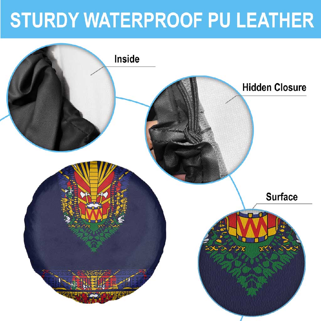 Haiti Flag Spare Tire Cover Traditional Dashiki Black Color
