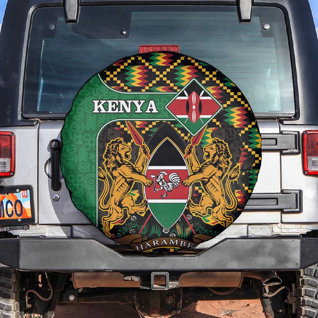 Kenya Spare Tire Cover - Kente Pattern, Coat Of Arms Design