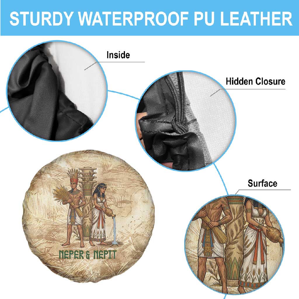 Neper and Nepit Spare Tire Cover Ancient Harvest and Fertility Design with Sickle and Grain