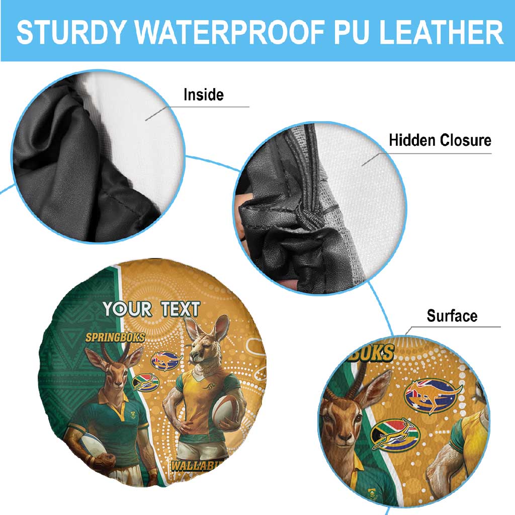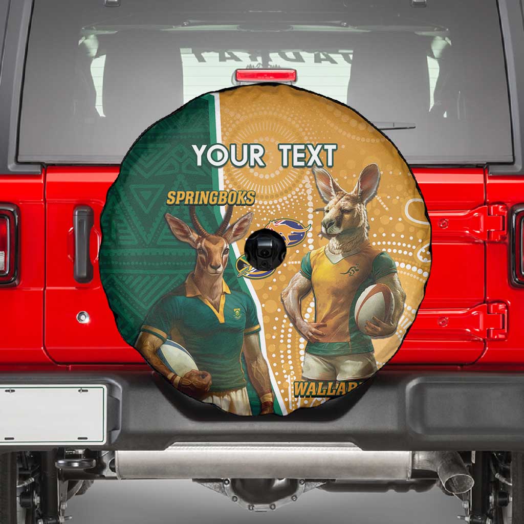 Personalised South Africa And Australia Rugby Spare Tire Cover 2024 Springboks Wallabies Mascots Together LT14